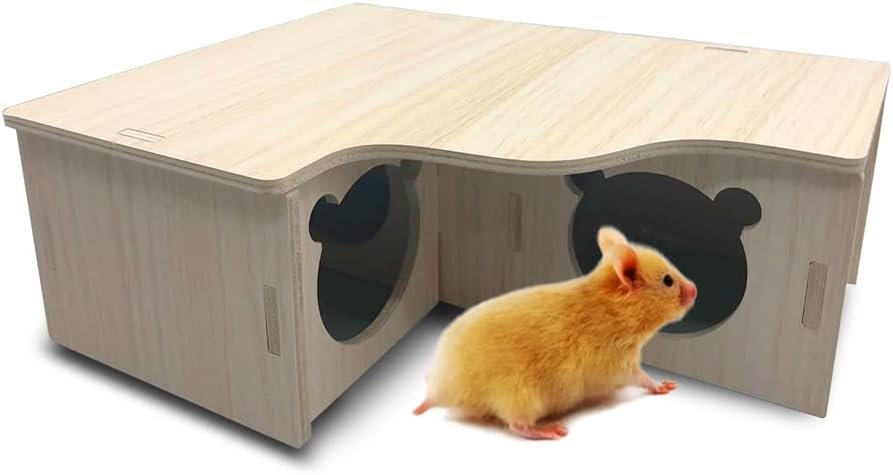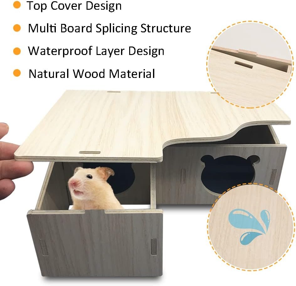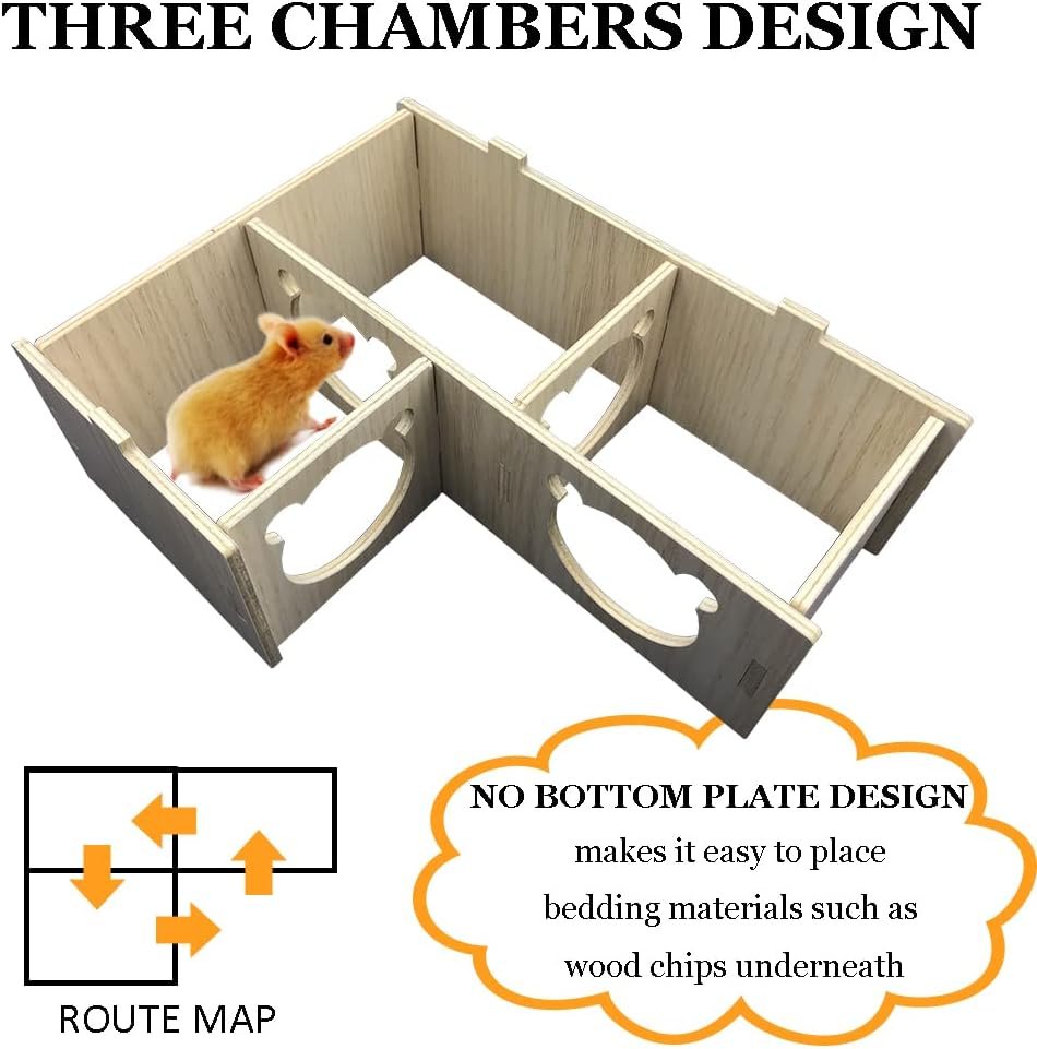 3-Kammer-Design: Dieses Holzhaus verfügt über drei Kammern, die durch vier Löcher mit einem Durchmesser von ca. 5,5 cm verbunden sind, in denen Ihr kleiner Liebling hin und her gehen kann, was den Spielspaß erhöht.