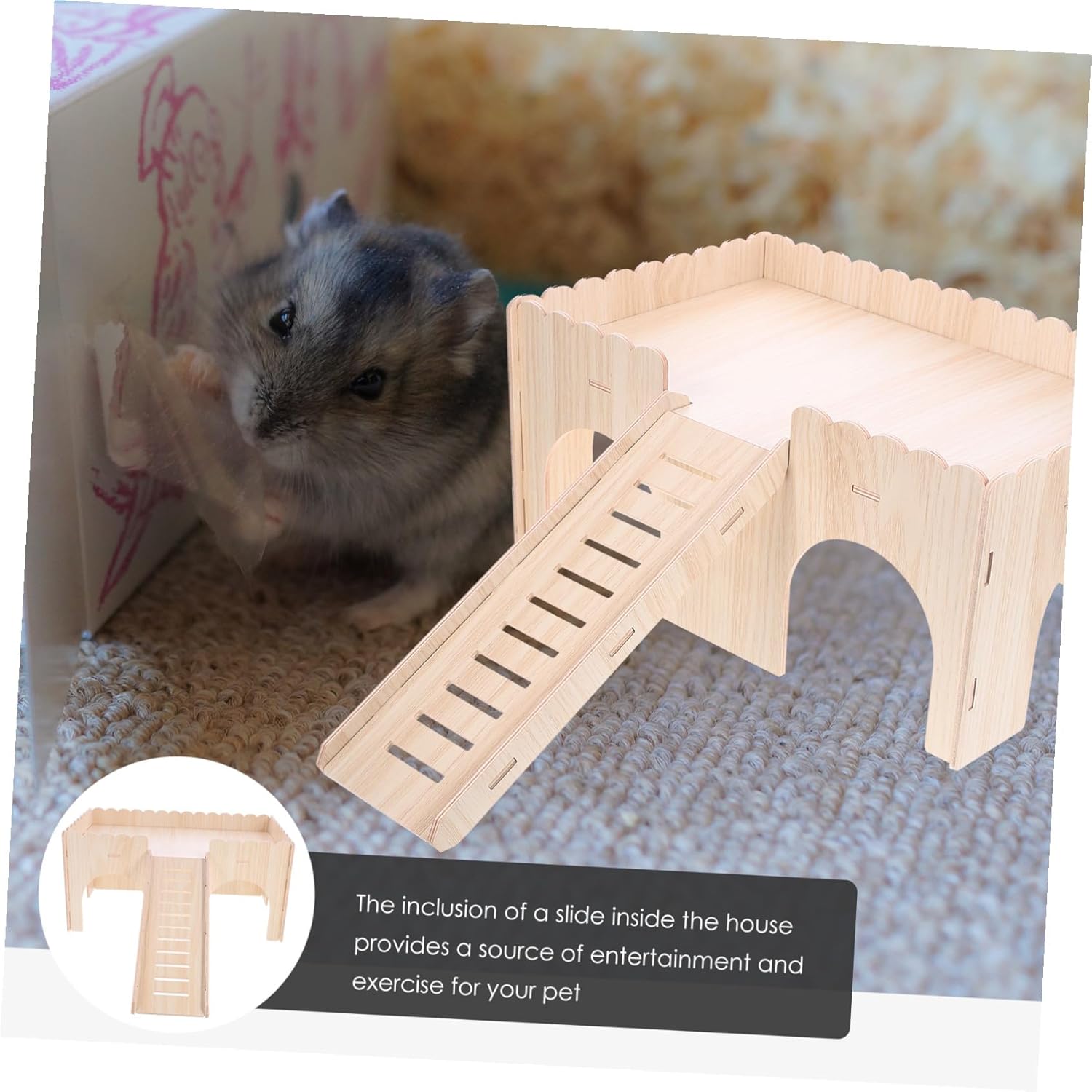 – Ein Mini-Holzhaus zum und Schlafen für Ihre kleinen Haustiere wie Hamster und Chinchillas, das ist ein sehr geeignetes kleines Hamsterhaus.
