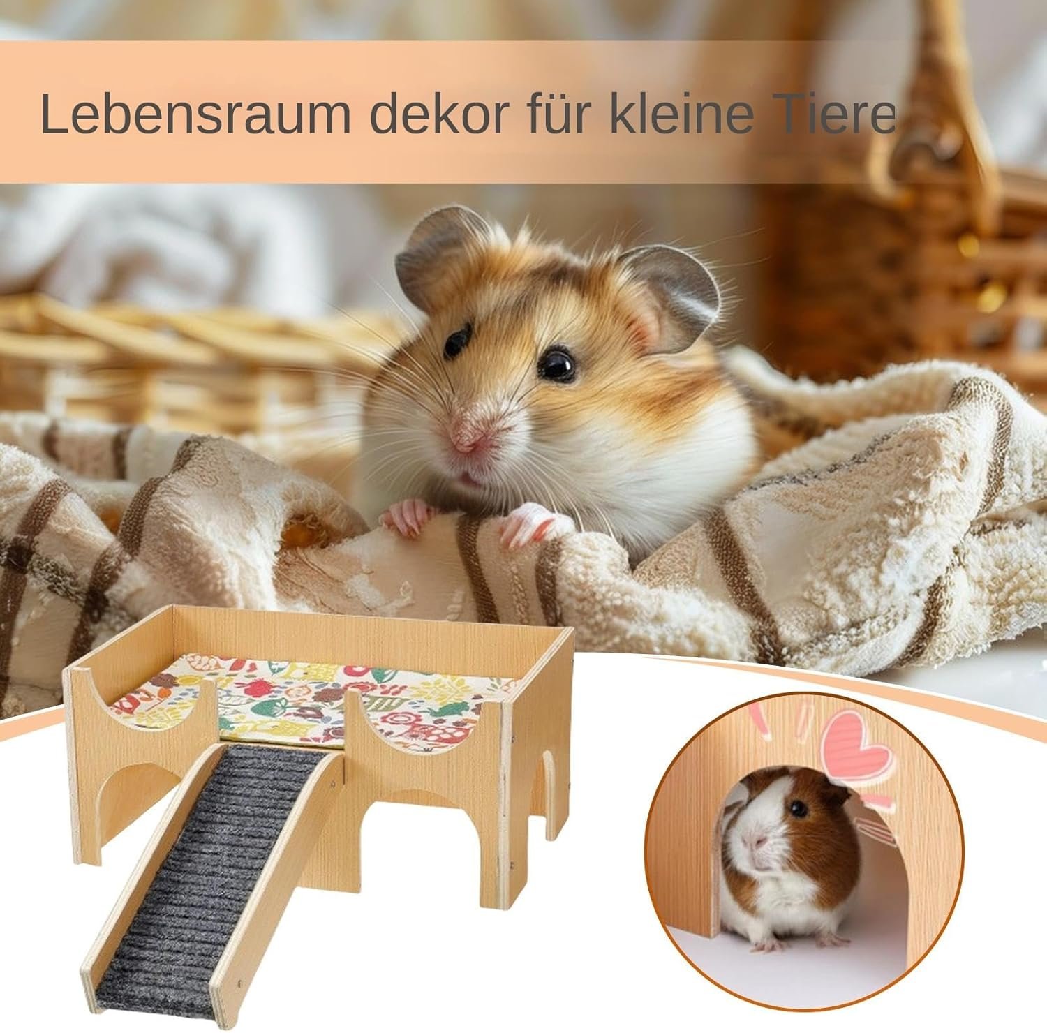 Gestalten Sie einen idealen Lebensraum für Ihr Haustier mit dem Hamster-Haus. Ausgestattet mit einer Kletterleiter, Treppen und Verstecken unterstützt es Bewegung und Erkundung. Geeignet für Hamster, Zwerghamster, Igel, Meerschweinchen und Kaninchen, kommt dieser Lebensraum mit Zubehör, das Aktivität und Komfort für alle kleinen Tiere fördert.