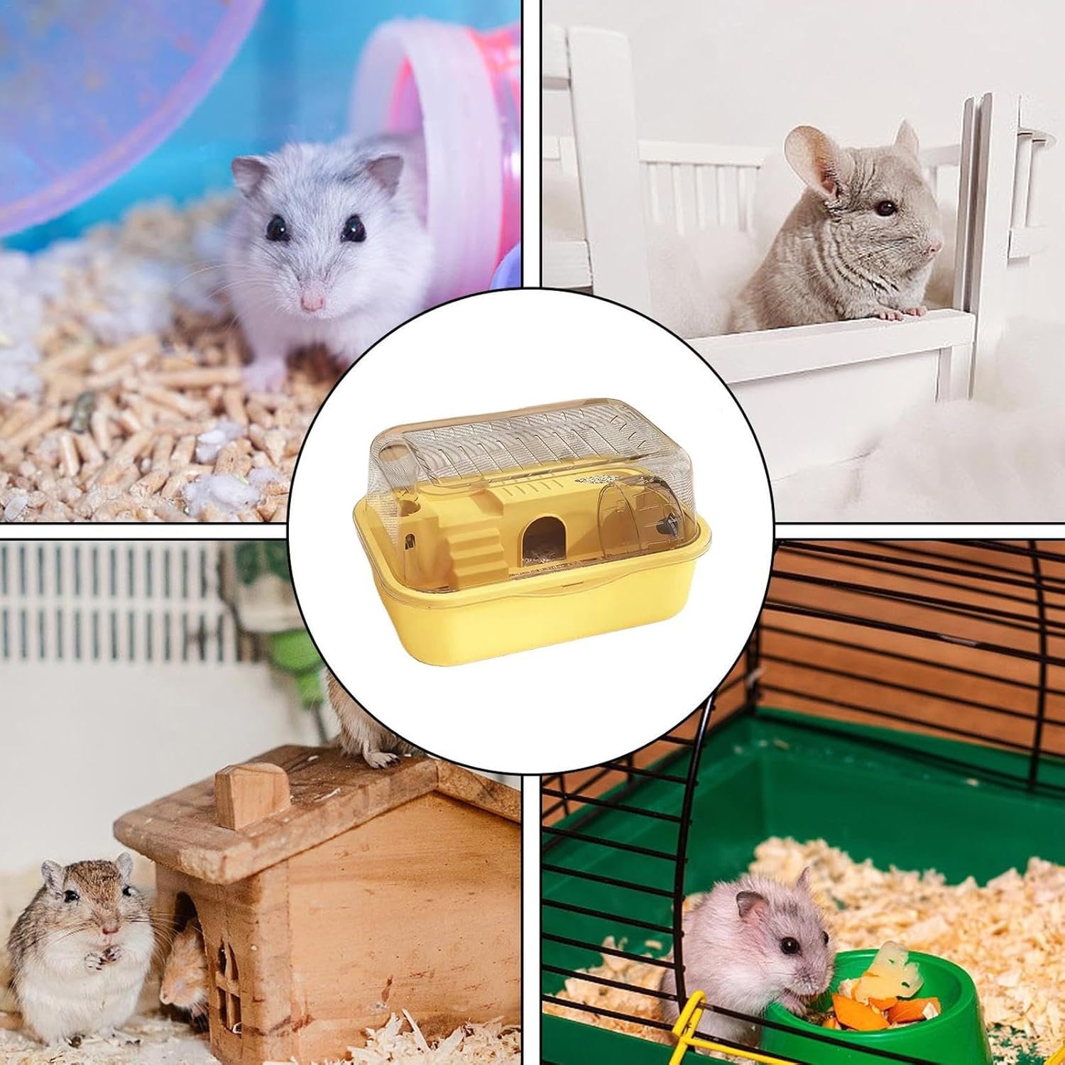 Schaffen Sie mit unserem Reisekäfig für Haustiere einen helleren und komfortableren Raum für Ihren pelzigen Freund. Perfekt für die Aufrechterhaltung einer sauberen Umgebung, die Förderung der Zuneigung und die Minimierung externer Eingriffe. Bietet geräuschlosen Lauf für zusätzlichen Komfort. Ideal für Hamster und kleine Haustiere. Spezifikationen: Produktmaterial: PP. Produktgewicht: 840 g. Produktgröße: ca. 35 x 25 x 18,5 cm. Packliste: 1 x Hamsterkäfig