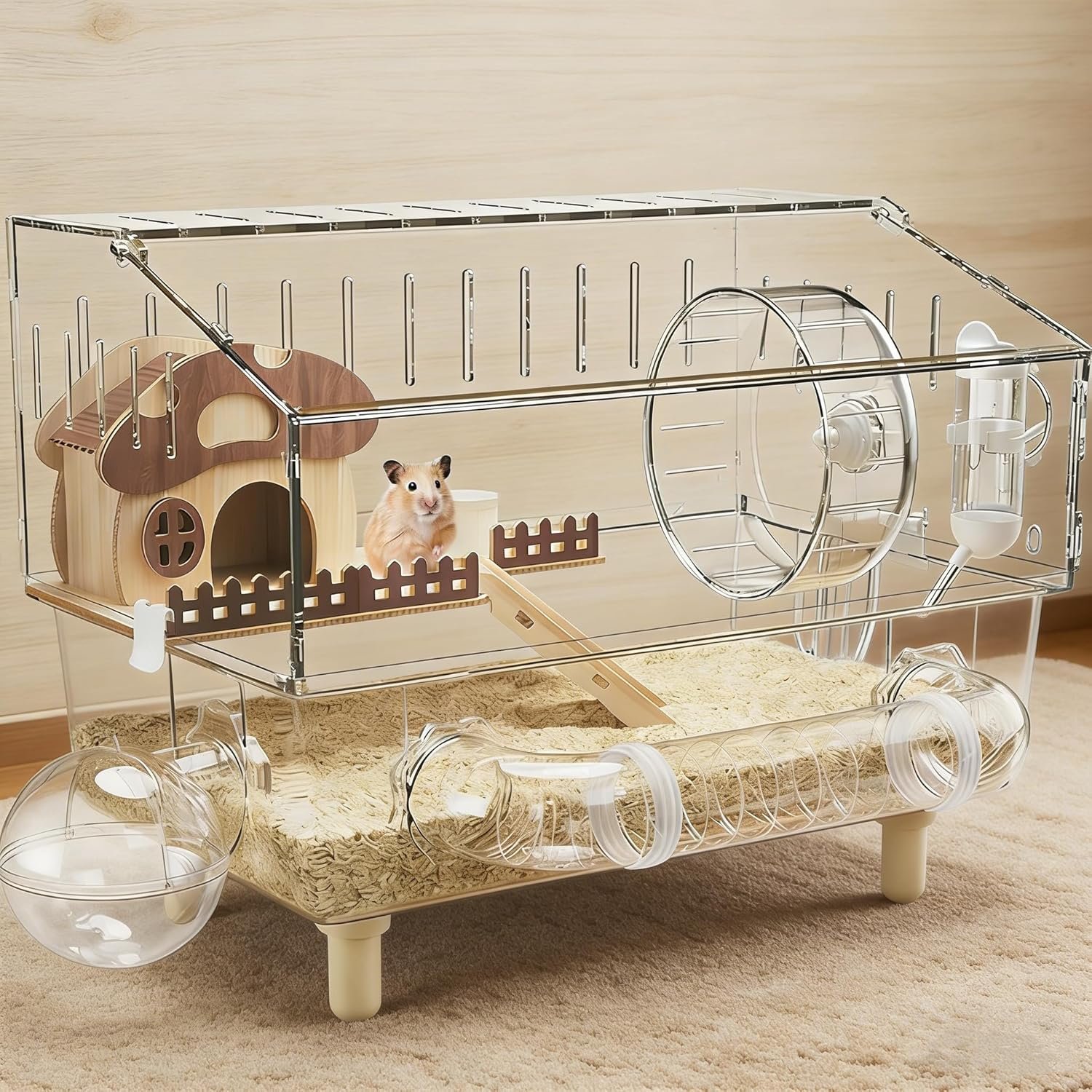 2. Transparentes Acryl-Sichtfenster: Unser Hamsterkäfig ist aus hochtransparentem Acryl gefertigt und ermöglicht eine 360°-Rundumsicht. Sie können die Aktivitäten Ihres Haustiers wie Futtersuche und Klettern ohne tote Winkel beobachten. Die Kombination aus Sichtbarkeit und Interaktion löst das Problem der eingeschränkten Sicht, das bei herkömmlichen Käfigen oft auftritt.