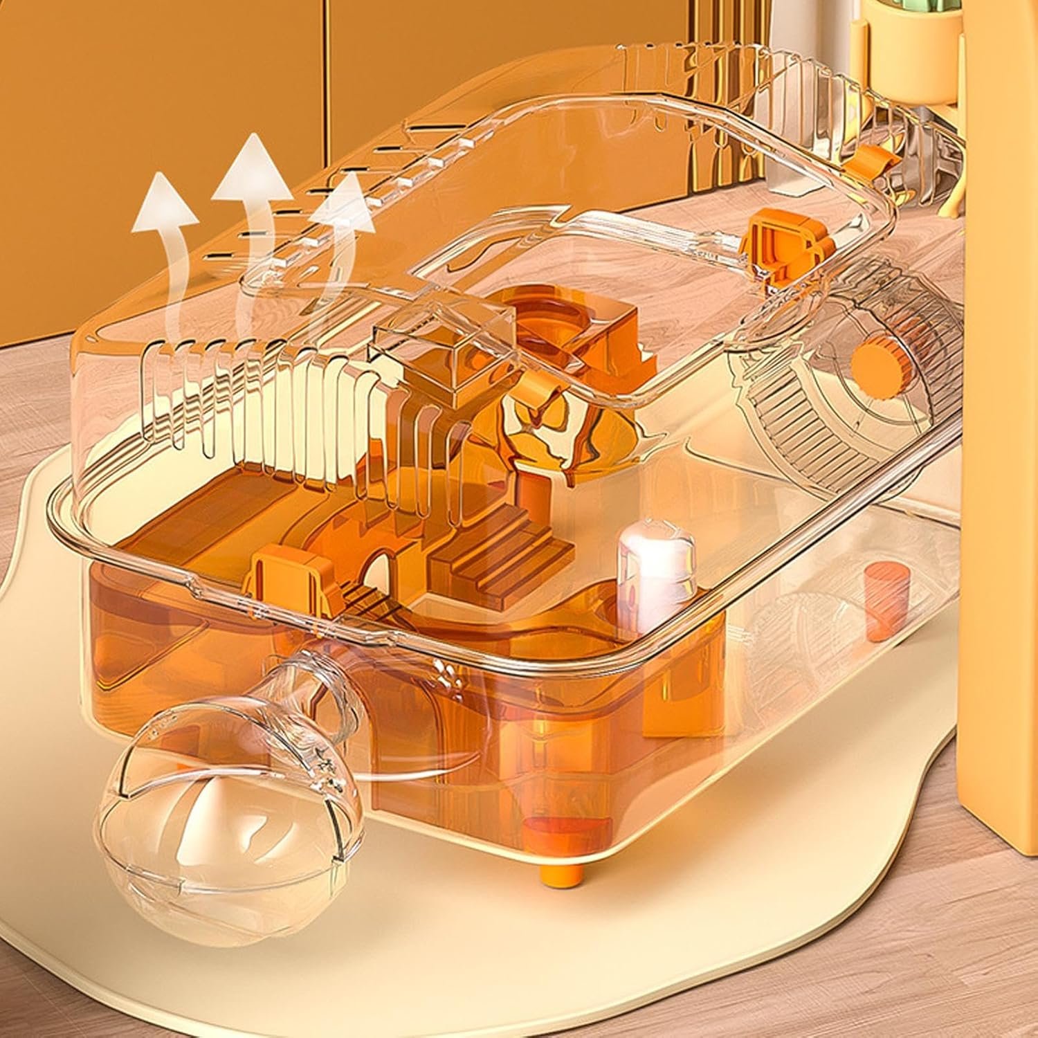 Transparentes Design: Dieser kleine Haustierkäfig verfügt über vollständig klare Wände, die eine vollständige Sichtbarkeit Ihrer Haustiere jederzeit ermöglichen. Perfekt für Hamster, Chinchillas, Hasen und andere kleine Tiere, hilft Ihnen, ihre Aktivitäten, Gesundheit und Verhalten leicht zu überwachen. Das transparente Design schafft auch einen modernen und sauberen Look und macht Interaktionen und Spielzeit ansprechender und bietet sowohl Haustieren als auch Besitzern eine komfortable und unterhaltsame Umgebung in Ihrem Zuhause.