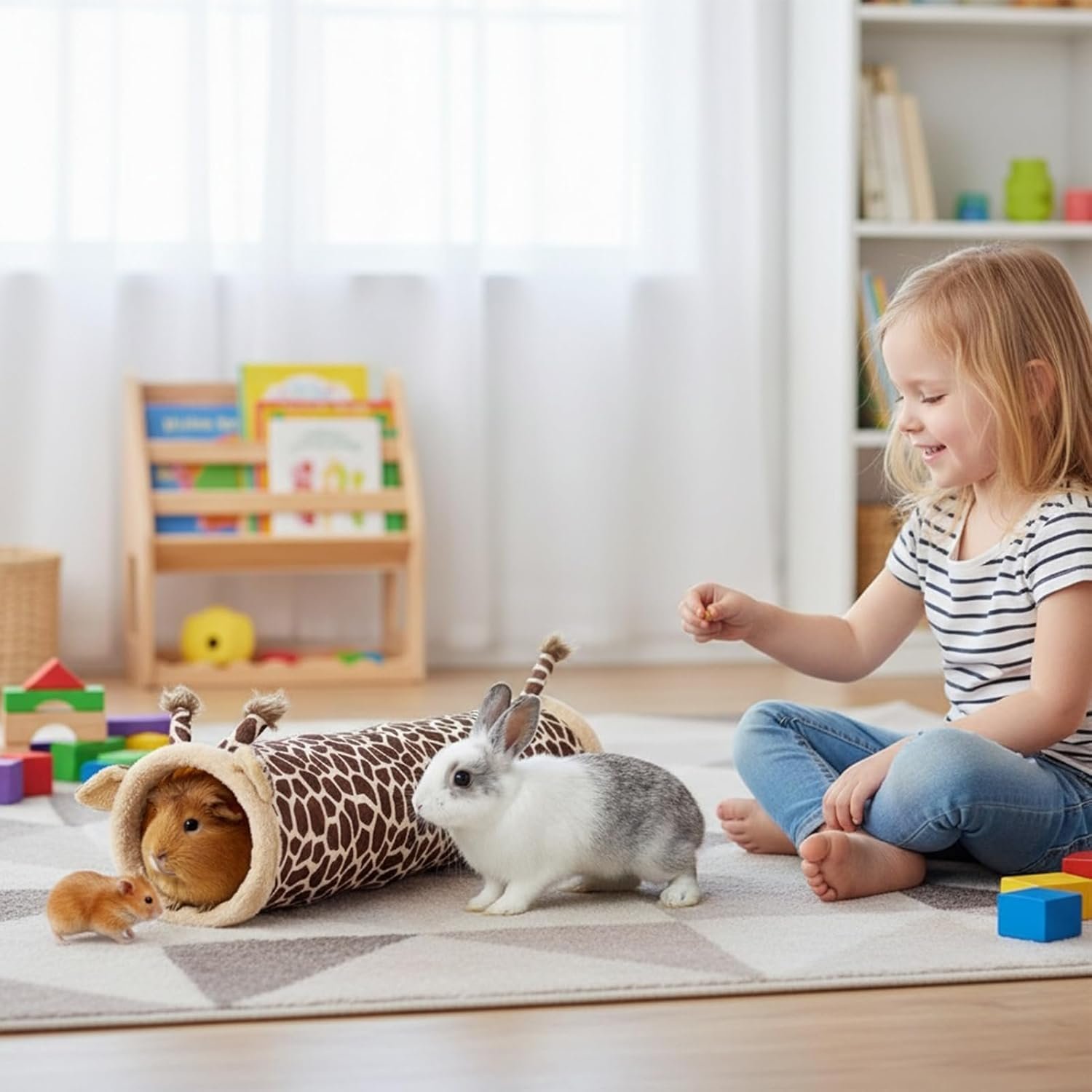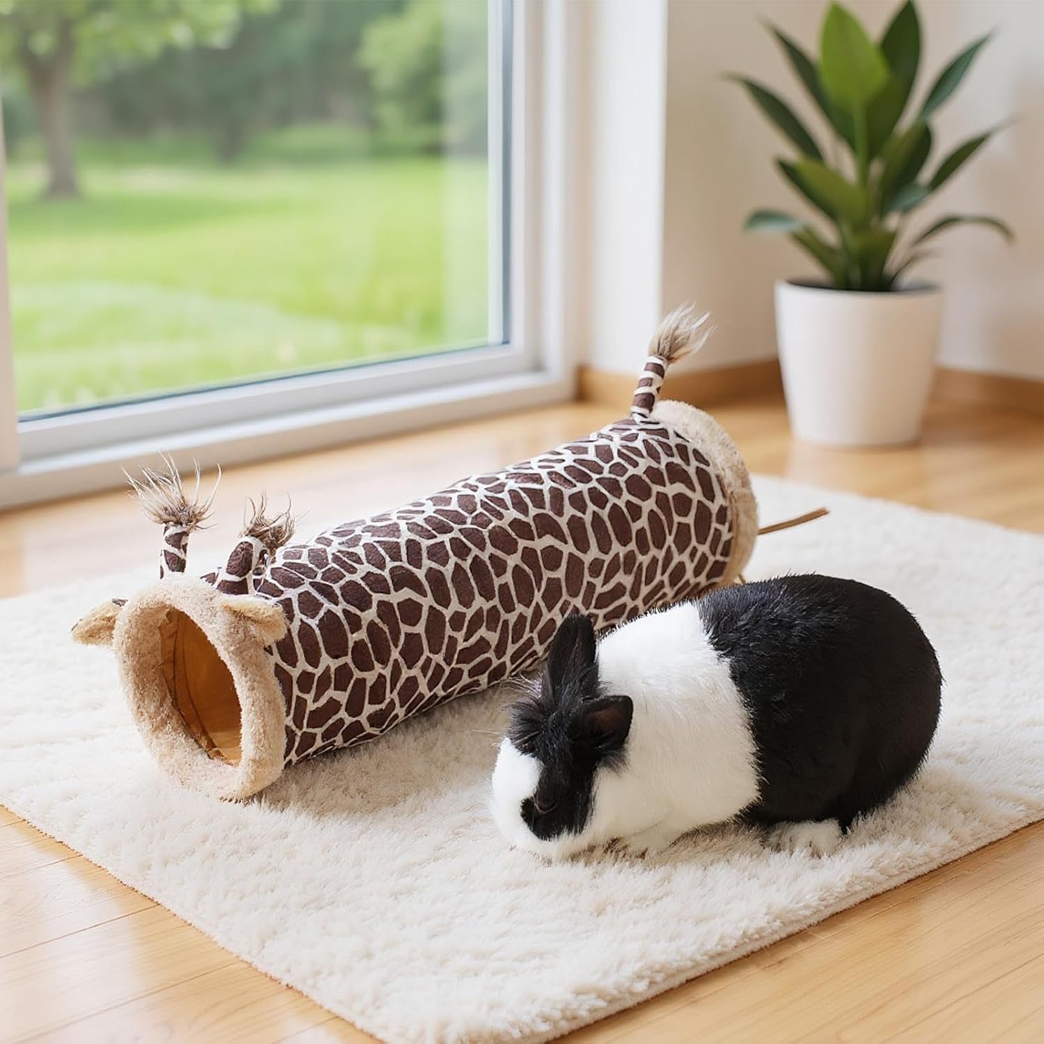 Der Nager tunnel ist mit einem charmanten Giraffendesign gestaltet, um eine ansprechende und bereichernde Umgebung für Ihre Haustiere zu schaffen. Dieses vielseitige Produkt dient sowohl als Spielplatz als auch als Unterschlupf und bietet ideale Räume zum Ausruhen, Schlafen und Spielen. Sorgfältig entwickelt, um Aktivitäten zur geistigen Anregung zu fördern, enthält der Tunnel eingebaute Spielzeuge, die natürliche Verhaltensweisen bei Zwergkaninchen, Hamstern, Igeln und Frettchen anregen. Perfekt für die Nutzung im Haus, stellt dieser Nager tunnel sicher, dass Ihre Haustiere Sicherheit genießen, während sie Erkundungen und Bewegung erleben.