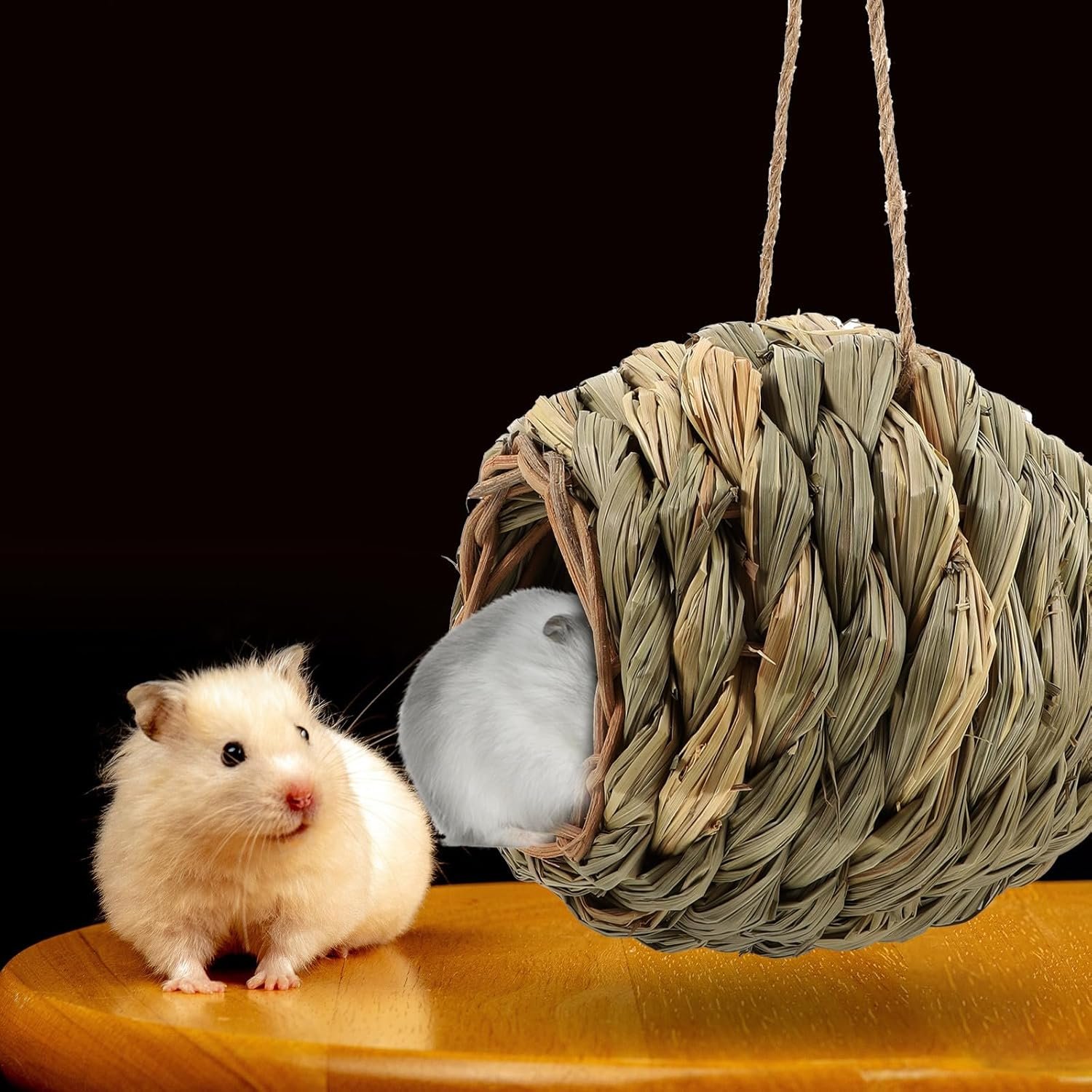 – Natürliches Gras: Dieses aus natürlichem Gras gefertigte, gewebte Nest ist langlebig und sicher für Kleintiere (Hamsterkäfigzubehör).
