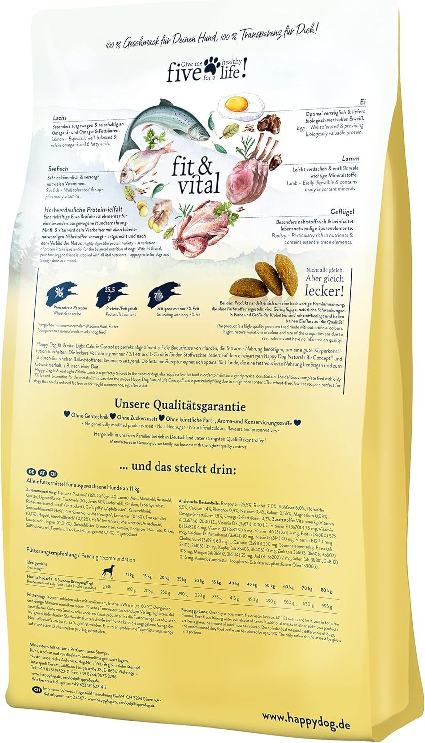 Qualität: Die Happy Dog Supreme Fit & Vital-Reihe überzeugt Hund und Halter durch eine ausgewogene Proteinvielfalt und einen reduzierten Fettgehalt aus Lachs, Seefisch, Ei, Lamm und Geflügel