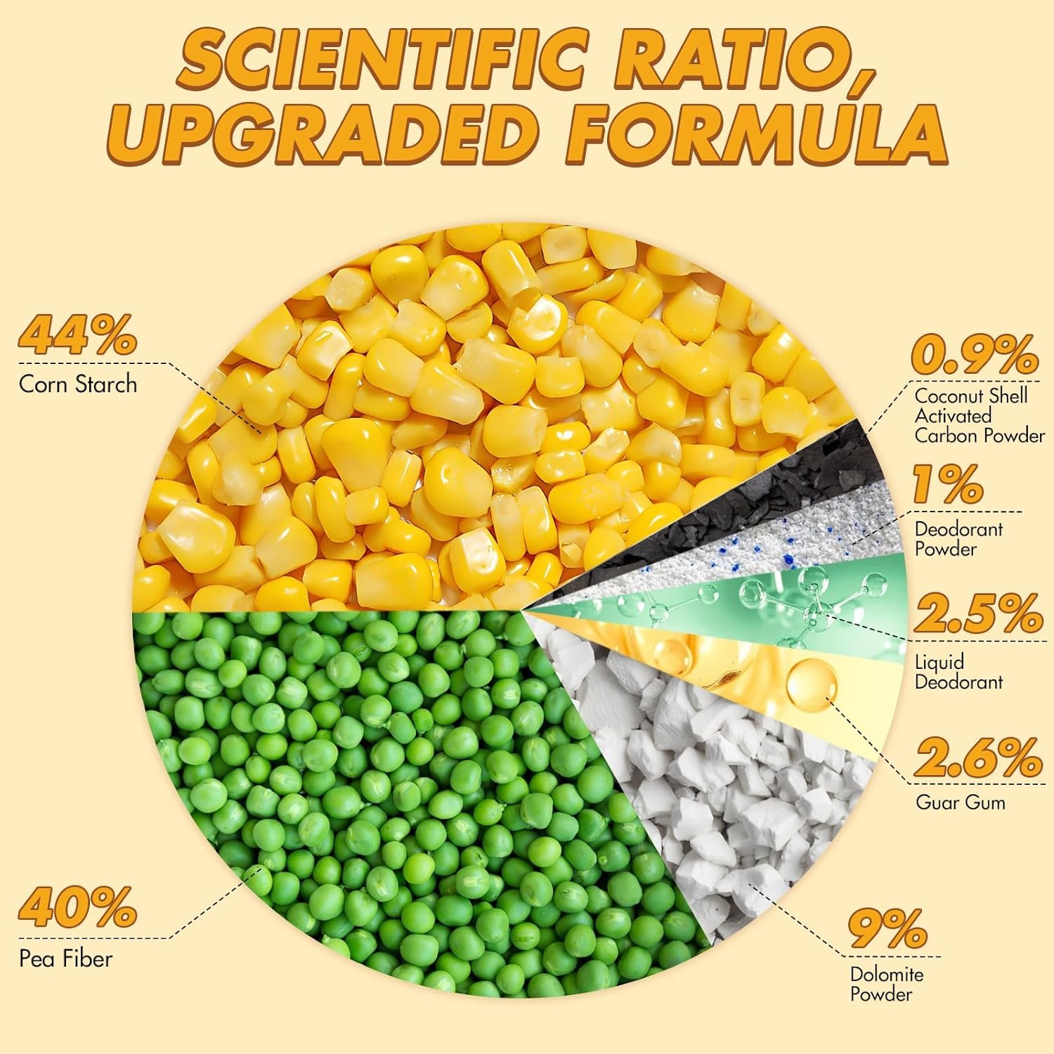 100 % natürliches, ausspülbares Katzenstreu – hergestellt aus Erbsenrückständen und Maisstärke, angereichert mit Aktivkohle aus Kokosnussschalen. Bietet schnelle Klumpenbildung, starke Geruchskontrolle, geringere Haftung an der Katzentoilette und sichere, umweltfreundliche Anwendung.