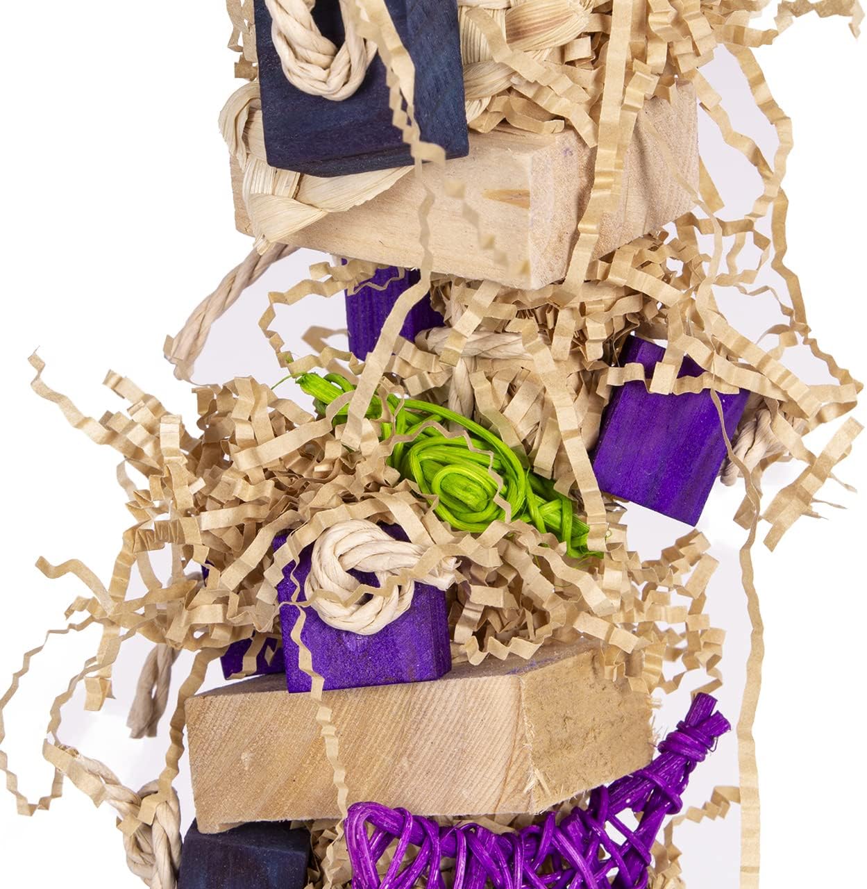 Schöne Beschäftigung – das Zerkleinerungsspielzeug mit viel Lockenpapier macht Spaß und beschäftigt Ihre gefiederten Freunde spielerisch.