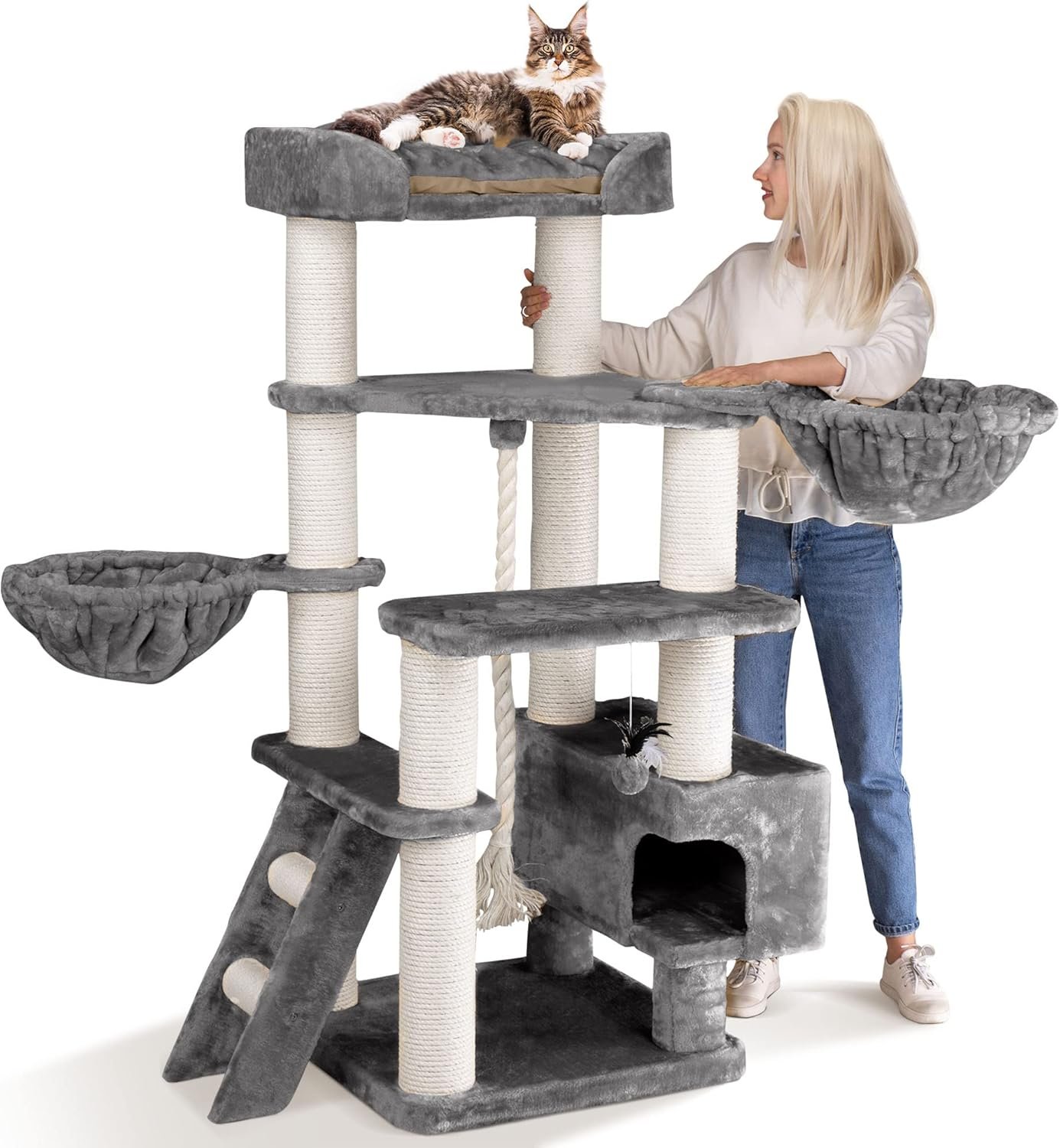 – Enthält ein zusätzliches dickes Spielseil und einen Spielball, um Ihre Katzen zu stimulieren.