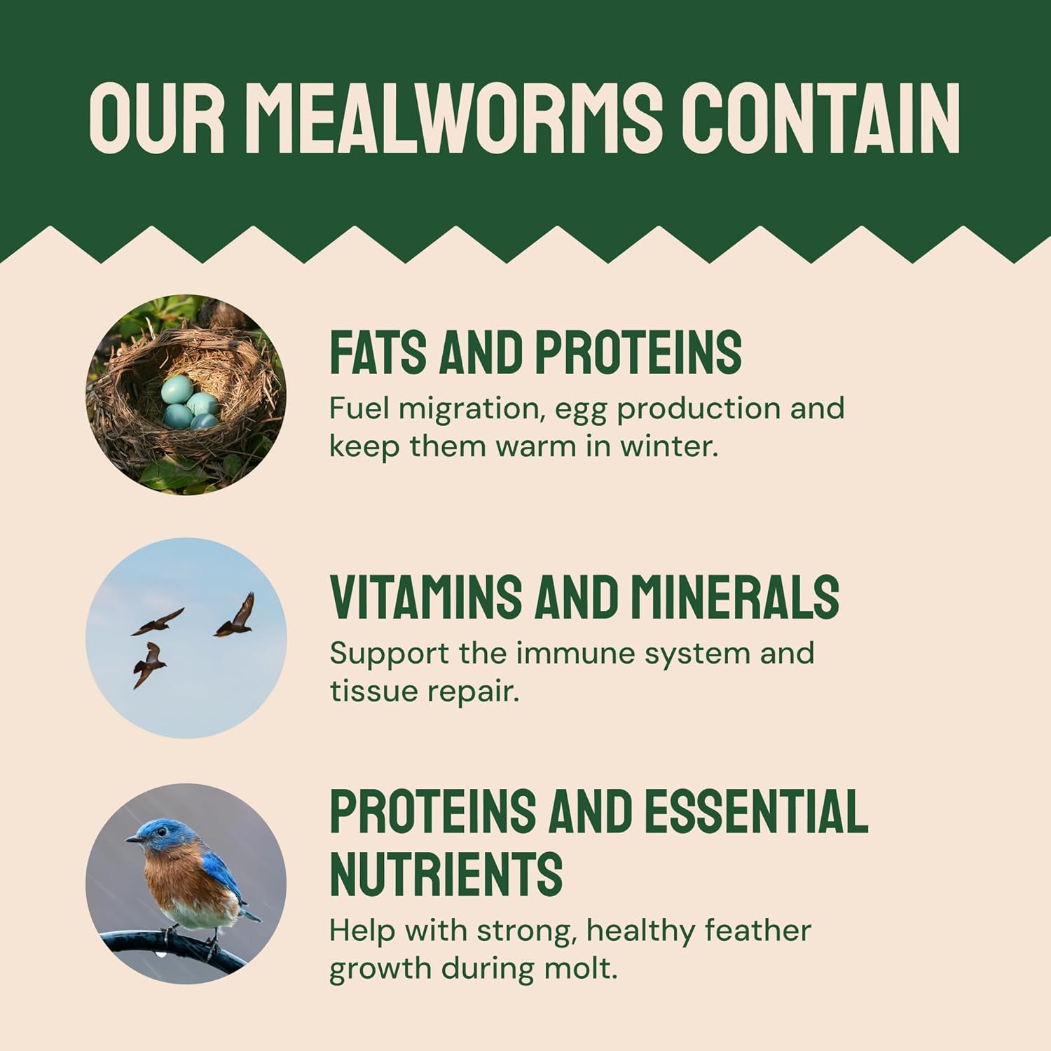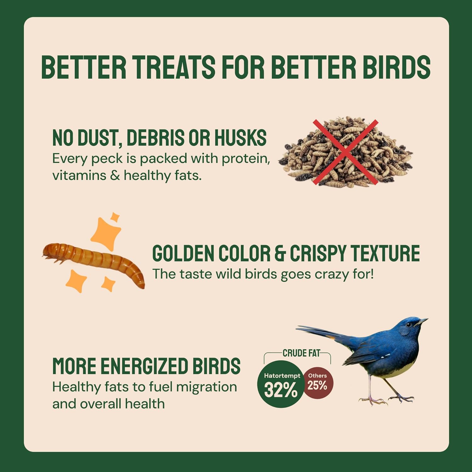 Vögel lieben es: Kundenzufriedenheit liegt uns sehr am Herzen. Sollten Sie oder Ihre Vögel mit diesen leckeren Mehlwürmern nicht zufrieden sein, erstatten wir Ihnen gerne den Betrag zurück. Gesundes Essen = glückliche Hühner und mehr Eier.