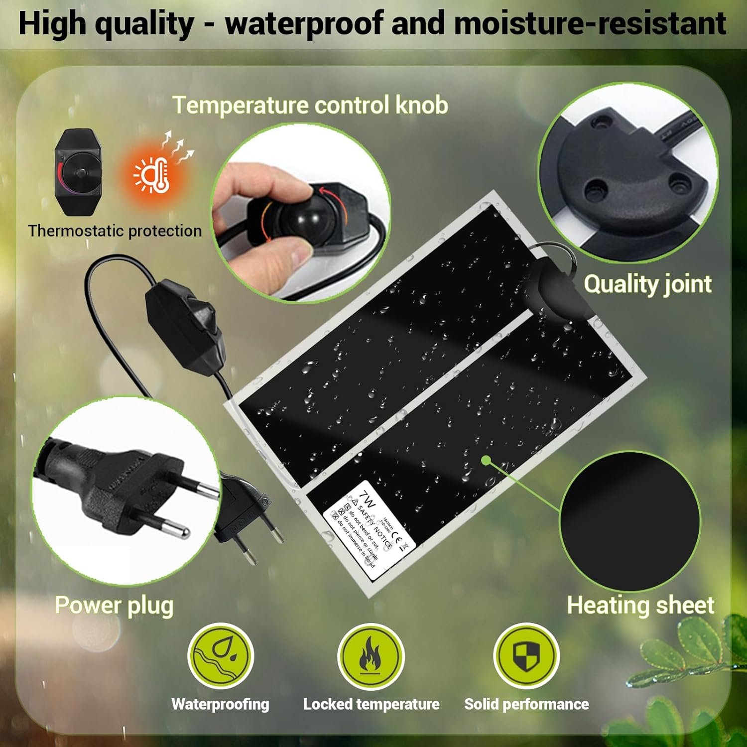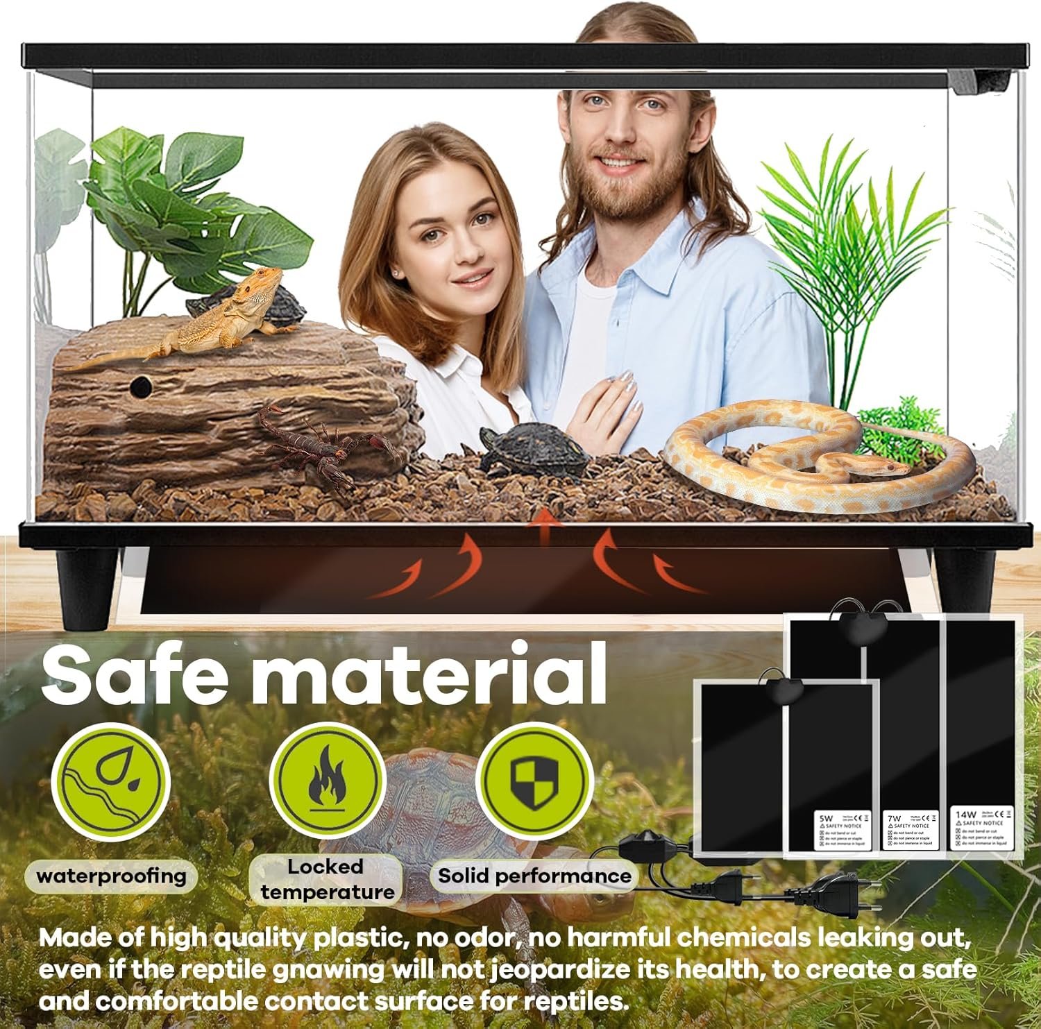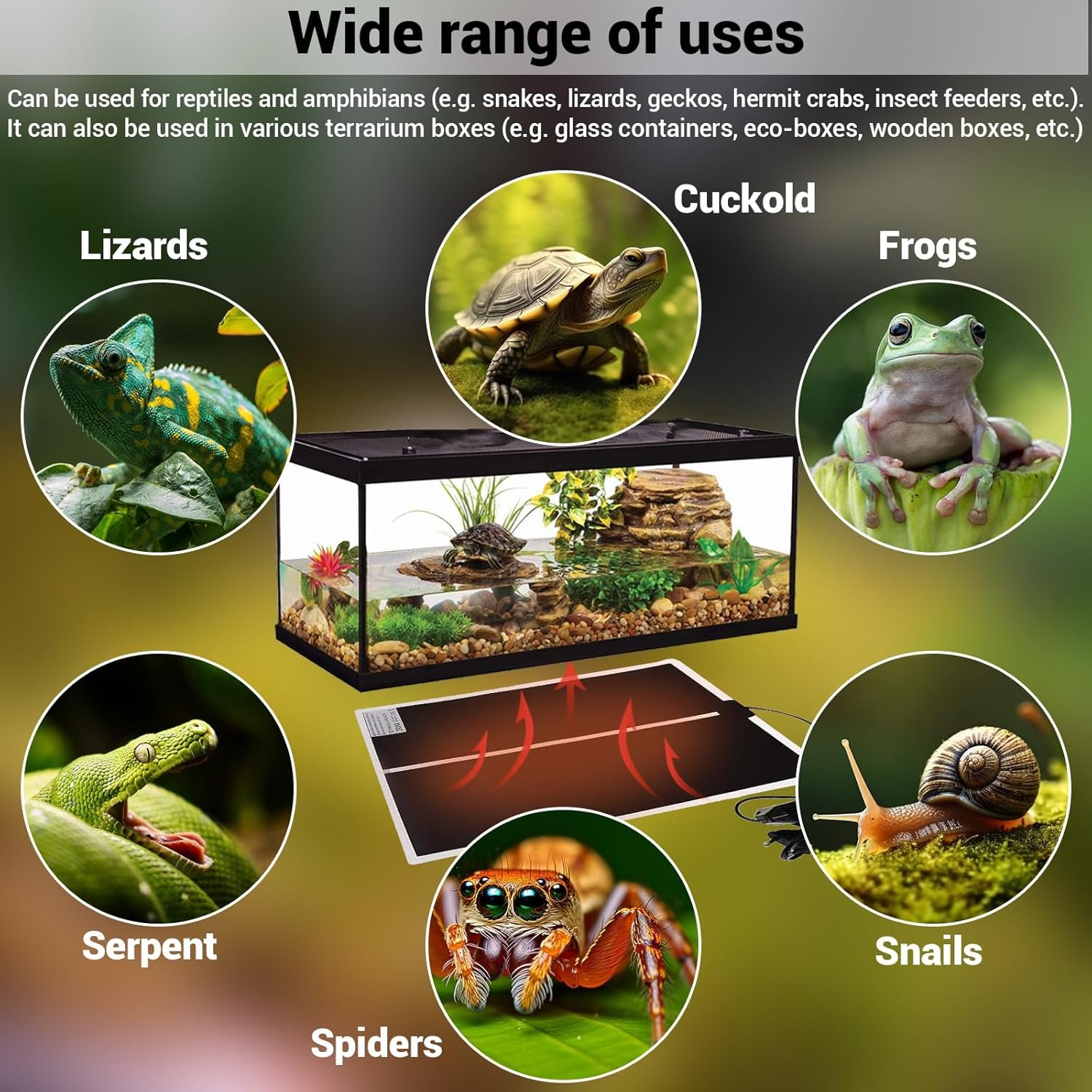 Universelle Heizmatte: Terrarien-Heizmatten sind ideale Wärmequellen für Wüsten- und tropische Reptilien-, Amphibien- und Spinnarten; Die Terrarienheizmatte kann in verschiedenen Glasaquarien, Schildkrötenbecken, Acrylkästen und Reptilienholzkisten verwendet werden. Reptilien-Heizmatte ideal für Amphibien, Kleintiere oder Pflanzenterrarien (Terrarien, Schildkröten, Einsiedlerkrebse, Schlangen, Geckos, Spinnen, Kleinsäuger usw.). Wasserdichte Heizmatte kann das ganze Jahr über verwendet werden
