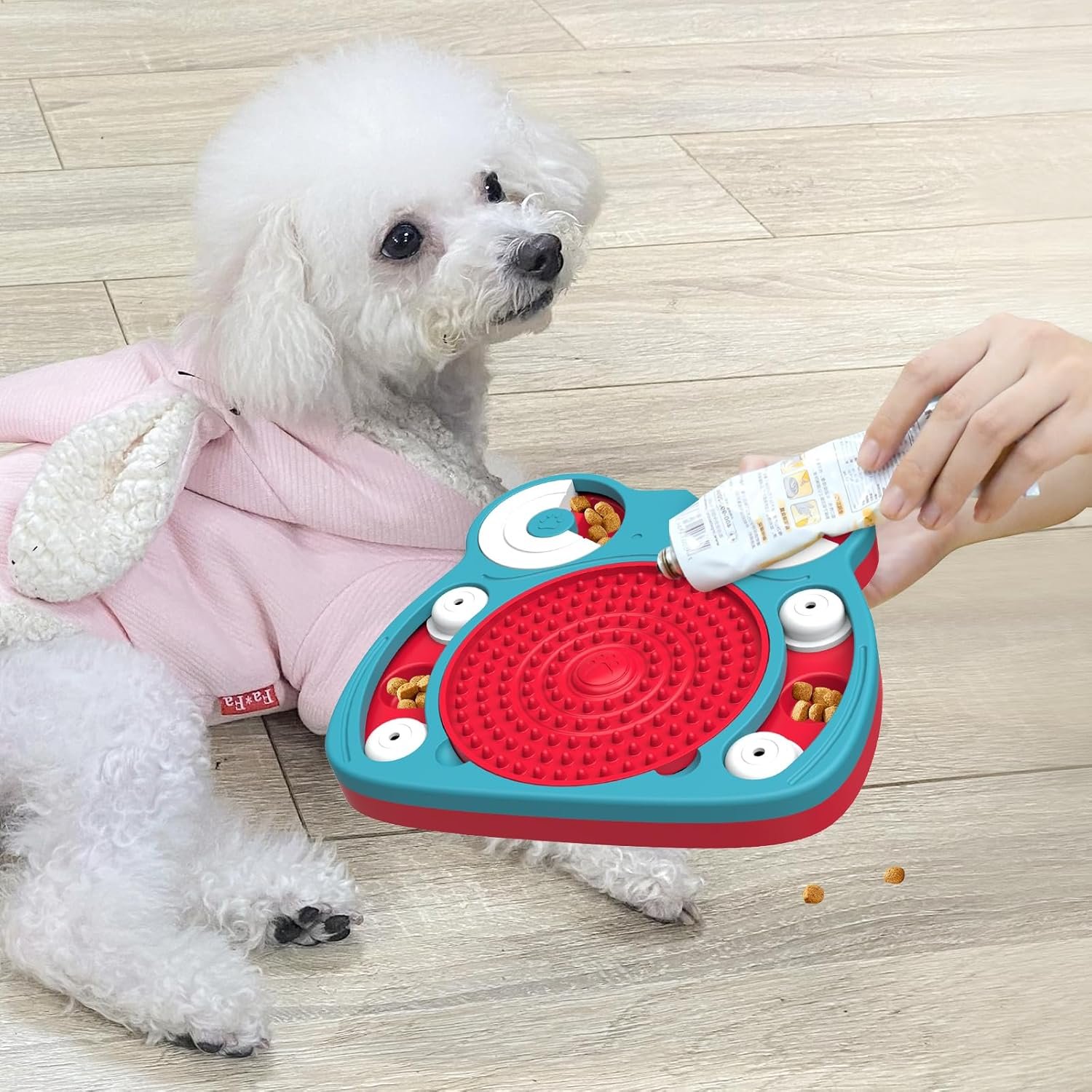 Unwiderstehlicher Reiz für den Haustierinstinkt: Alle Arten von Hunden und Katzen sind dank ihres angeborenen Geruchssinns und ihrer bemerkenswerten Fähigkeit, mit ihren Krallen nach Futter zu suchen, völlig in das HETOO Leckerli-Spielzeug für Hunde verliebt. Dieses geniale Spielzeug verbindet Rundbahn-Schiebespiele nahtlos mit Linear-Schiebespielen. Um an die leckeren Futterbelohnungen zu kommen, die geschickt im Labyrinth versteckt sind, sind intelligente Hunde und Katzen gefragt, die den Schieber geschickt manövrieren. Dieses ansprechende Verfahren stärkt nicht nur ihre kognitiven Fähigkeiten, sondern verbessert auch ihren Geruchssinn, vertreibt Langeweile und lindert effektiv Ängste