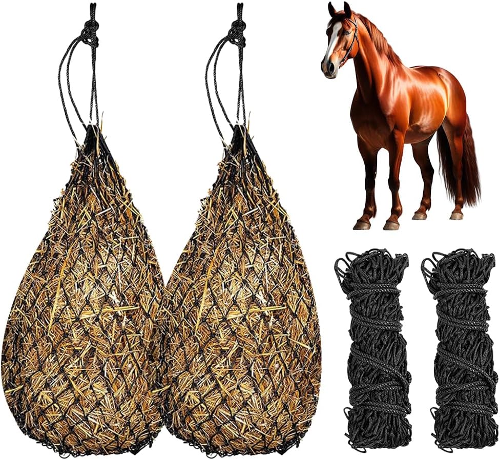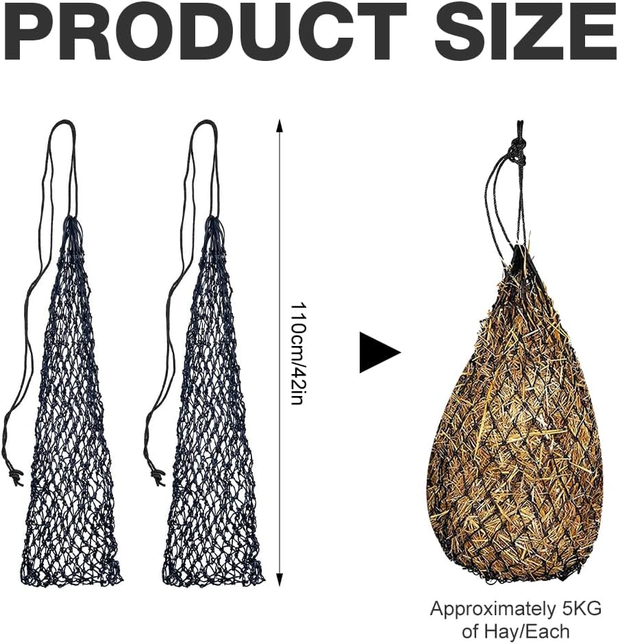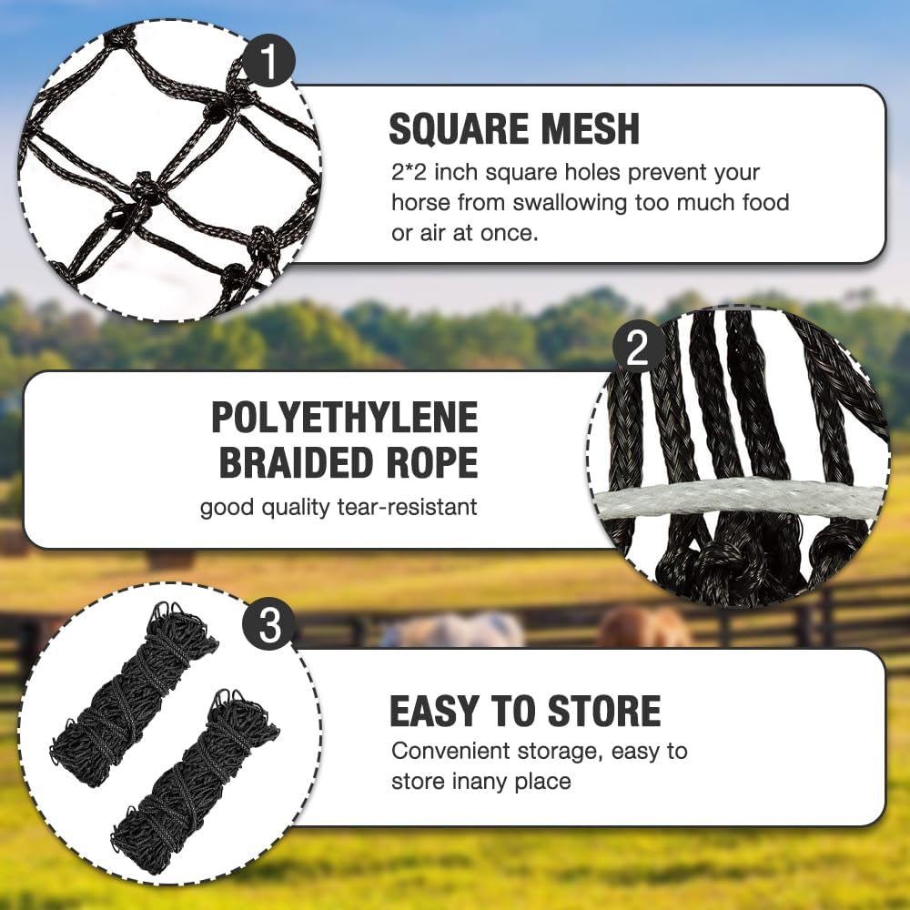– Ein Set besteht aus zwei engmaschigen Heunetzen, die aus hochwertigem Nylon gefertigt sind und sich durch eine hervorragende Haltbarkeit auszeichnen, sodass sie Zeit und Wetter standhalten. Die Heunetze für Pferde nutzen sich nicht ab und bleichen nicht so schnell aus, sodass sie lange verwendet werden können.