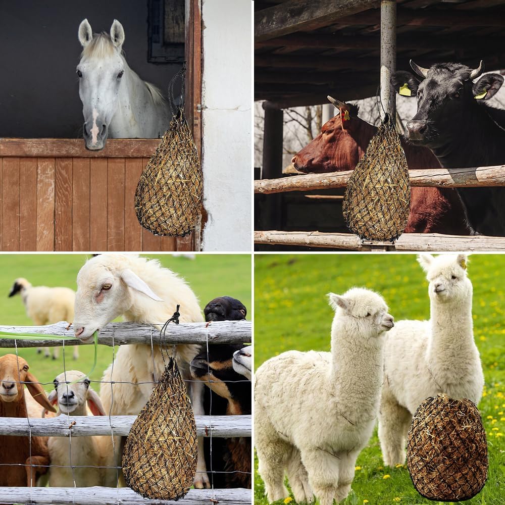 Breite Anwendbarkeit: Unser engmaschiges Heunetz ist ideal für verschiedene Tiere wie Pferde, Ponys, Schafe, Esel, Ziegen usw. Das große Heunetz für Pferde erleichtert die Tierhaltung in verschiedenen Umgebungen wie Koppeln, Offenställen, Pferdeställen oder Pferdekarren