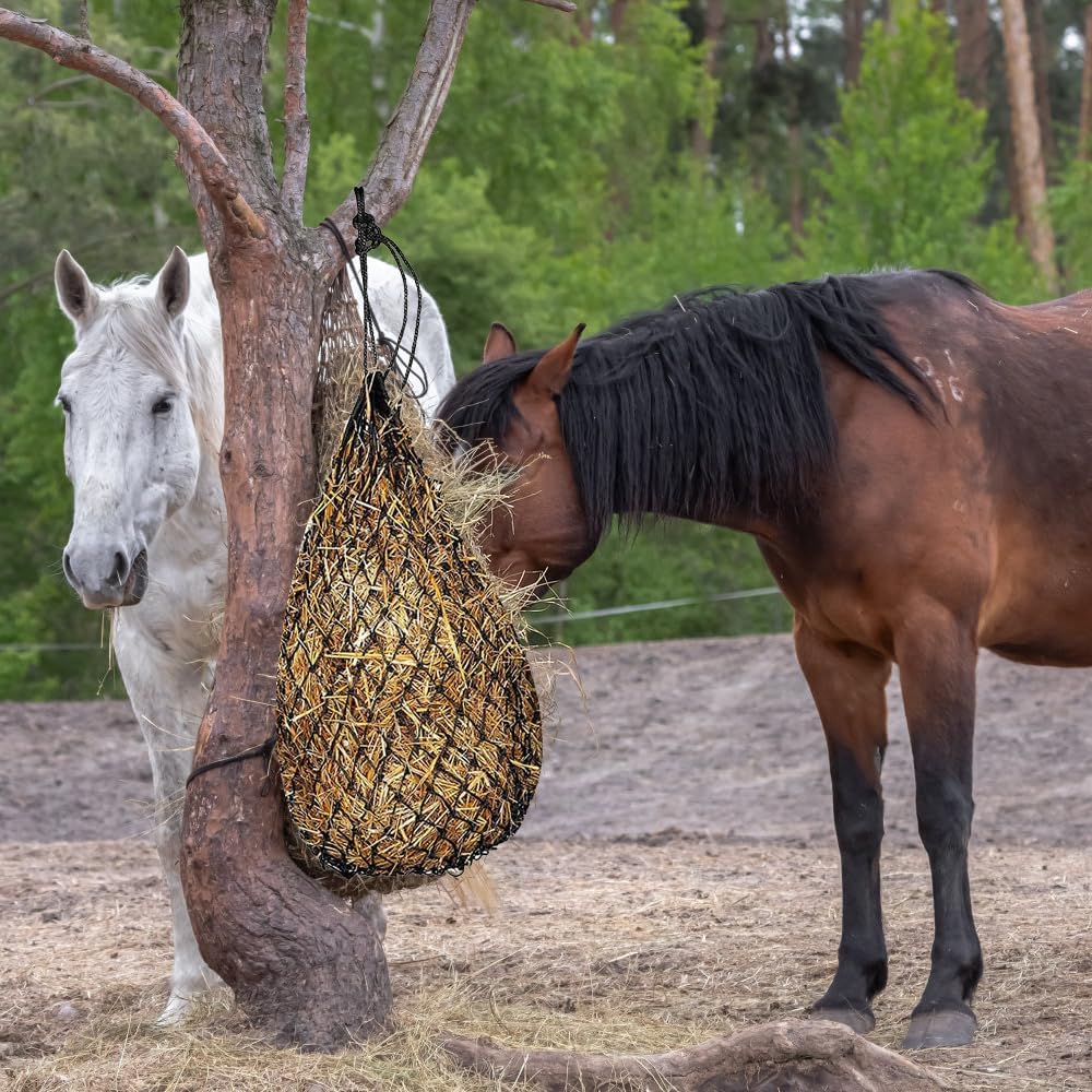 – Warum Heu auf den Boden werfen, anstatt es elegant zu genießen? Unser heutiges Pferd löst dieses Problem. Mit dem Heunetz für Pferde können Pferde nach und nach das Heu aus dem Netz nehmen und es auf natürlichere Weise fressen, wodurch sie langsamer fressen, Magen-Darm-Probleme reduzieren und die Zahngesundheit fördern.