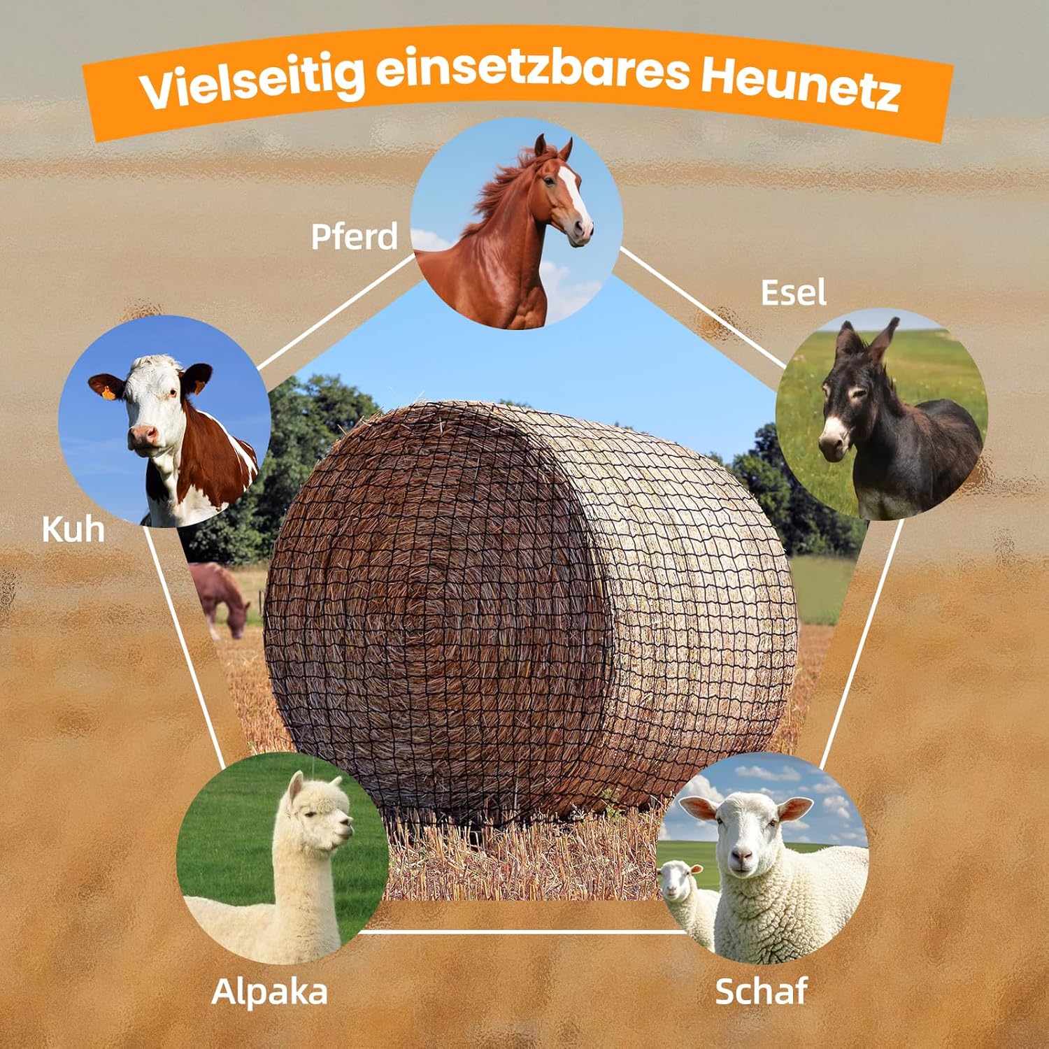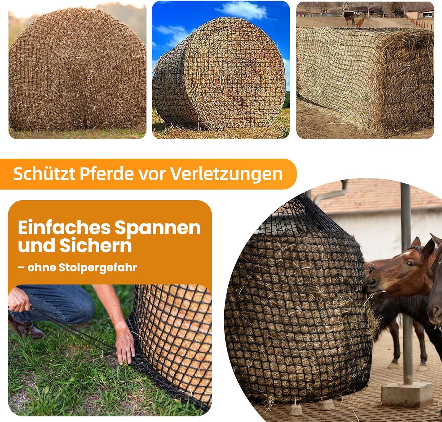 Vielseitig einsetzbar: Ideal für Pferde, Schafe und Alpakas zur kostengünstigen Bereitstellung von Raufutter oder zur Lagerung von Heu und Silage. Das Netz verhindert das Auseinanderfallen des Heus, ist reißfest und eignet sich perfekt für den täglichen Einsatz auf Heuraufen, um Heuverschwendung zu minimieren