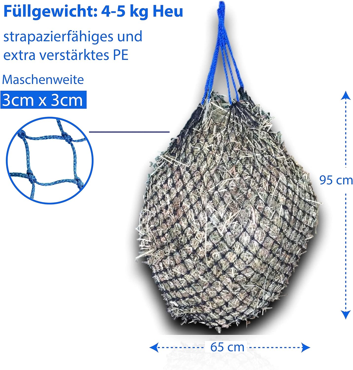 Fakten – Füllgewicht ca. 4,5 kg Heu + 4 x Karabiner, geeignet für Pferde, Ponys, Esel, Schafe, Ziegen und viele andere Tiere