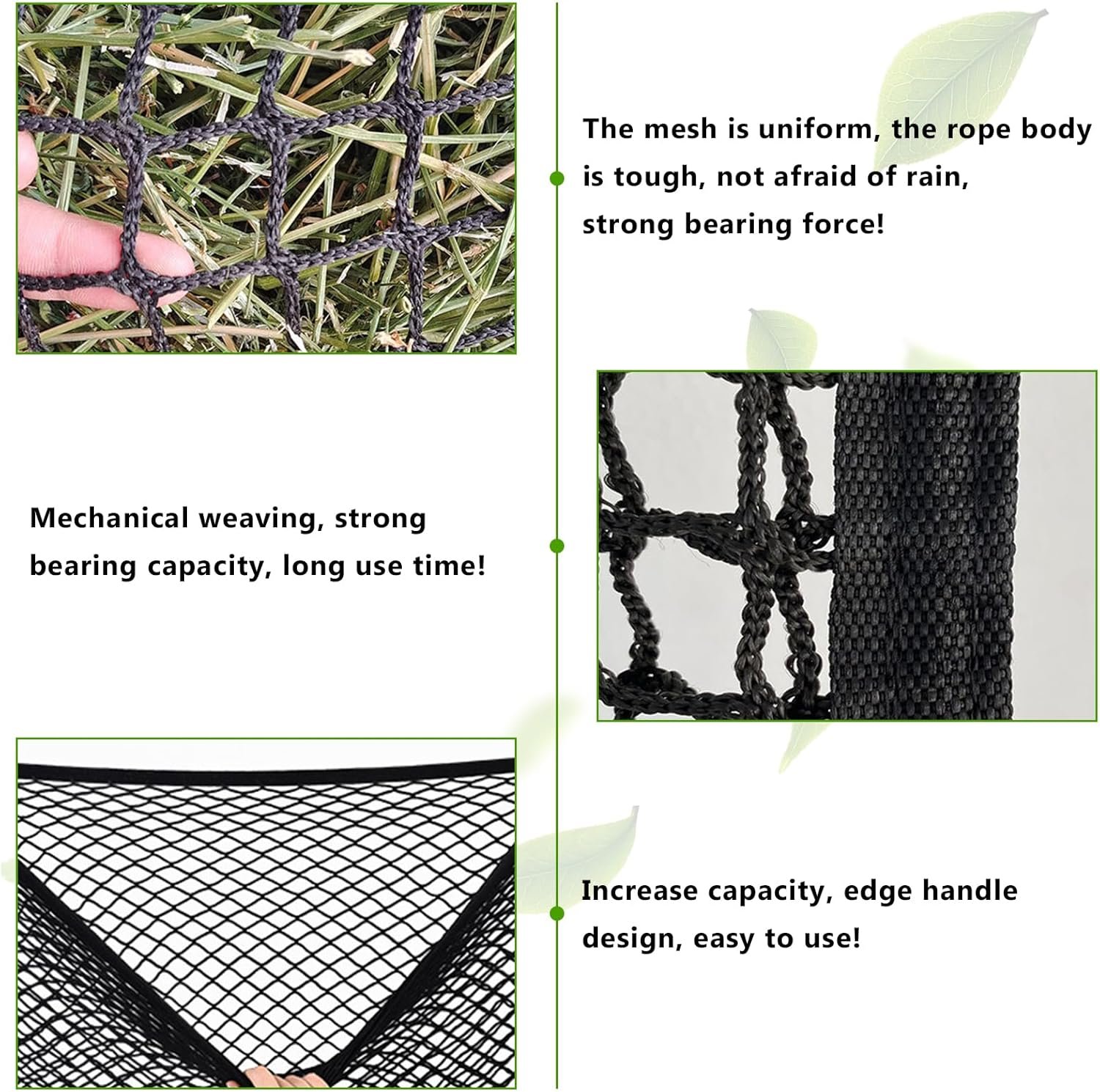 Heunetz für Pferde: Das Material ist robust, reißfest und dennoch weich und sanft zum Pferdemaul. Dieses Futternetz ist eine ausgezeichnete Wahl für die Aufzucht von Pferden, da es deren Ernährungsbedürfnisse erfüllt und gleichzeitig Unterhaltungs- und Bewegungsmöglichkeiten bietet.