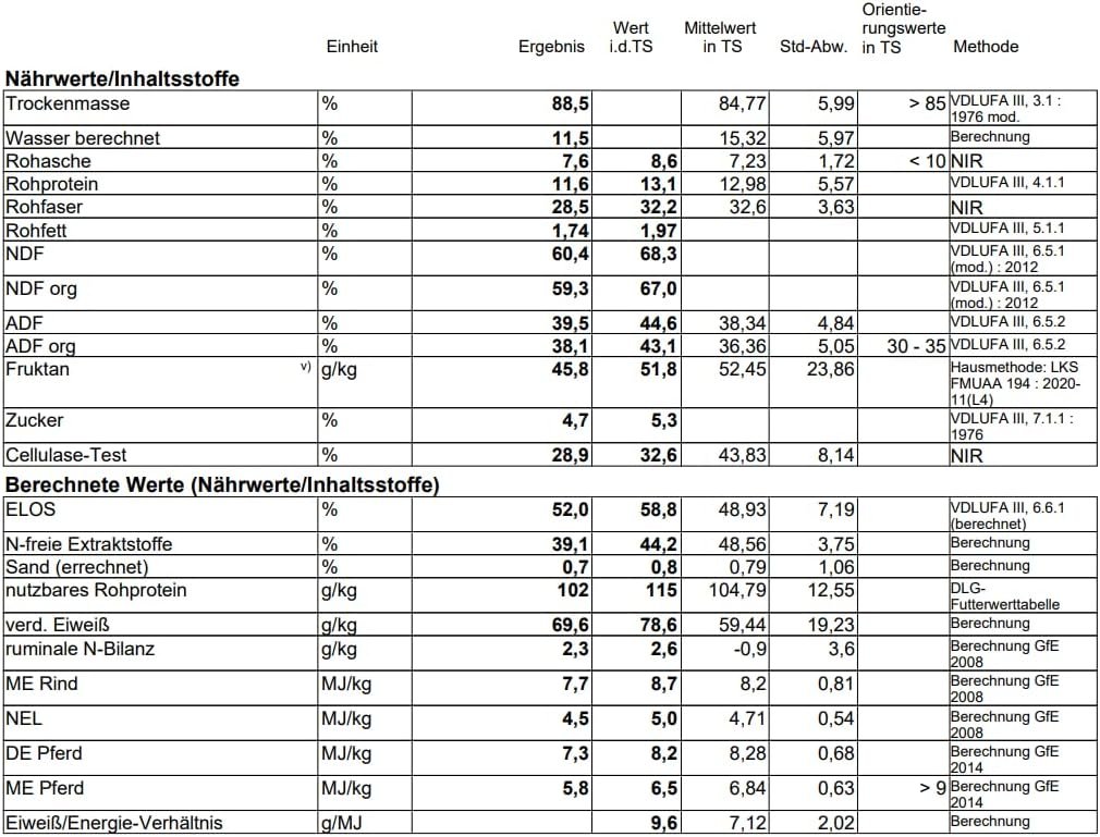 Heu von eigenen Wiesen, gepresst und gesiebt mit eigener Presse