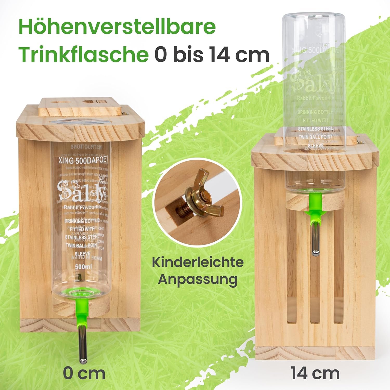 Inklusive 500 ml Trinkflasche Hase: Höhenverstellbare Trinkflasche Hase mit Halterung für alle Kleintiere – immer frisches Wasser für Ihre Lieblinge
