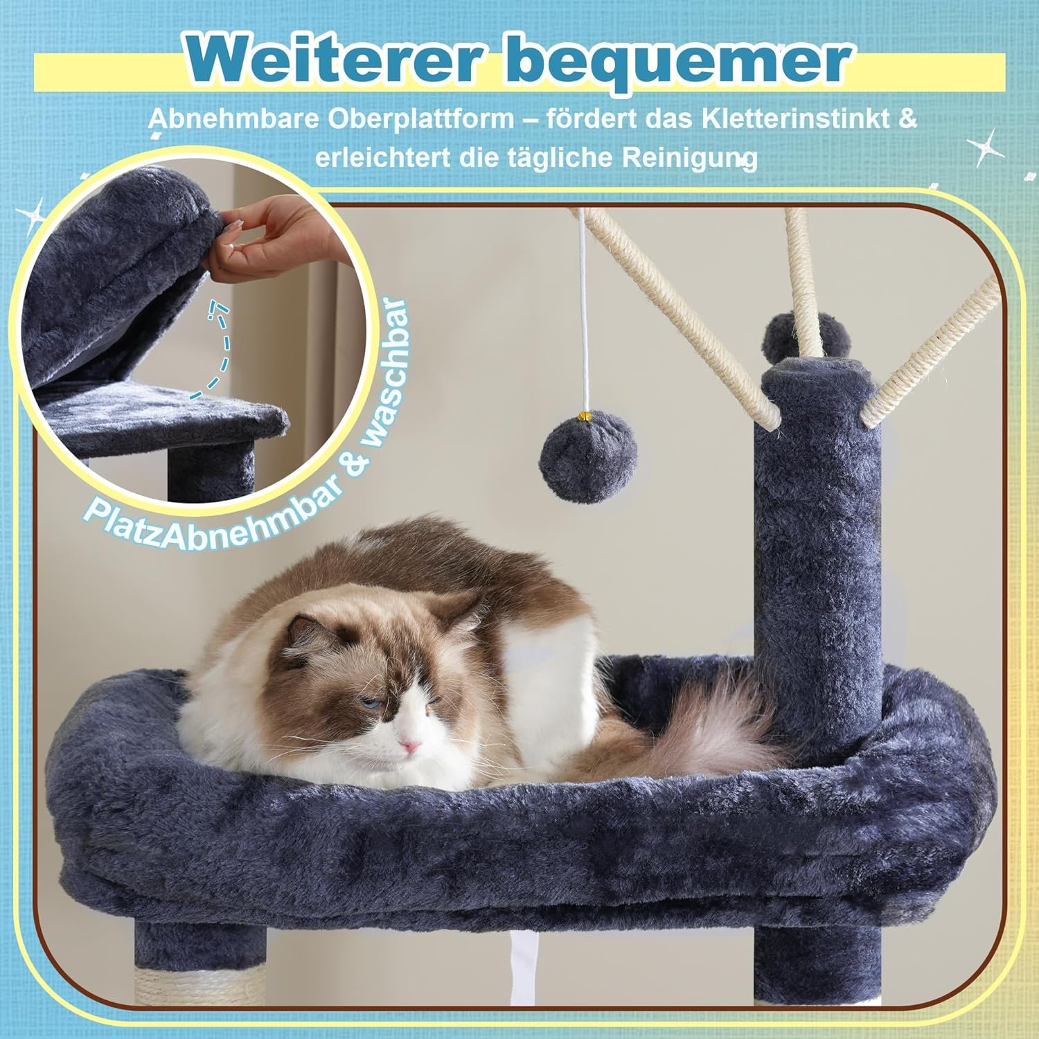 Gesunde Krallen, glückliches Zuhause: 9 Kratzbäume + großes Kratzbrett, ausreichend Fläche für gesundes Krallenschärfen, schützen Sie Ihre Möbel vor Beschädigungen. 3 abnehmbare interaktive Spielzeuge zum Solospiel und zum gemeinsamen Verbinden