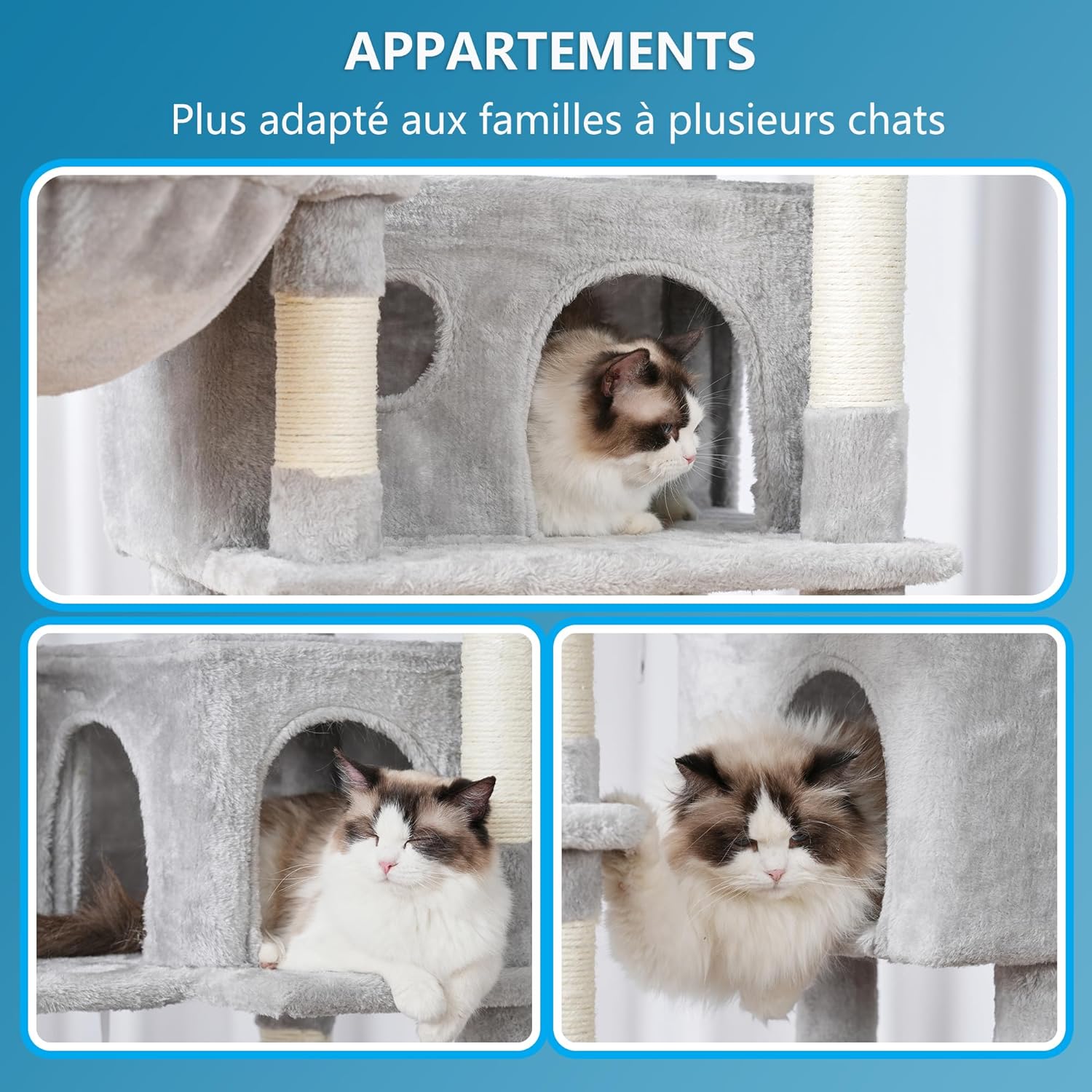 Mit Sisal überzogene Kratzbäume: Die unteren Stufen sind mit Katzenhaarbürsten ausgestattet. Mehrere verstärkte Kratzbäume mit natürlichen Sisalseilen eignen sich perfekt zum Kratzen und Schleifen der Krallen Ihrer Katzen, sodass Sie Ihre Möbel nicht mehr zerkratzen müssen!