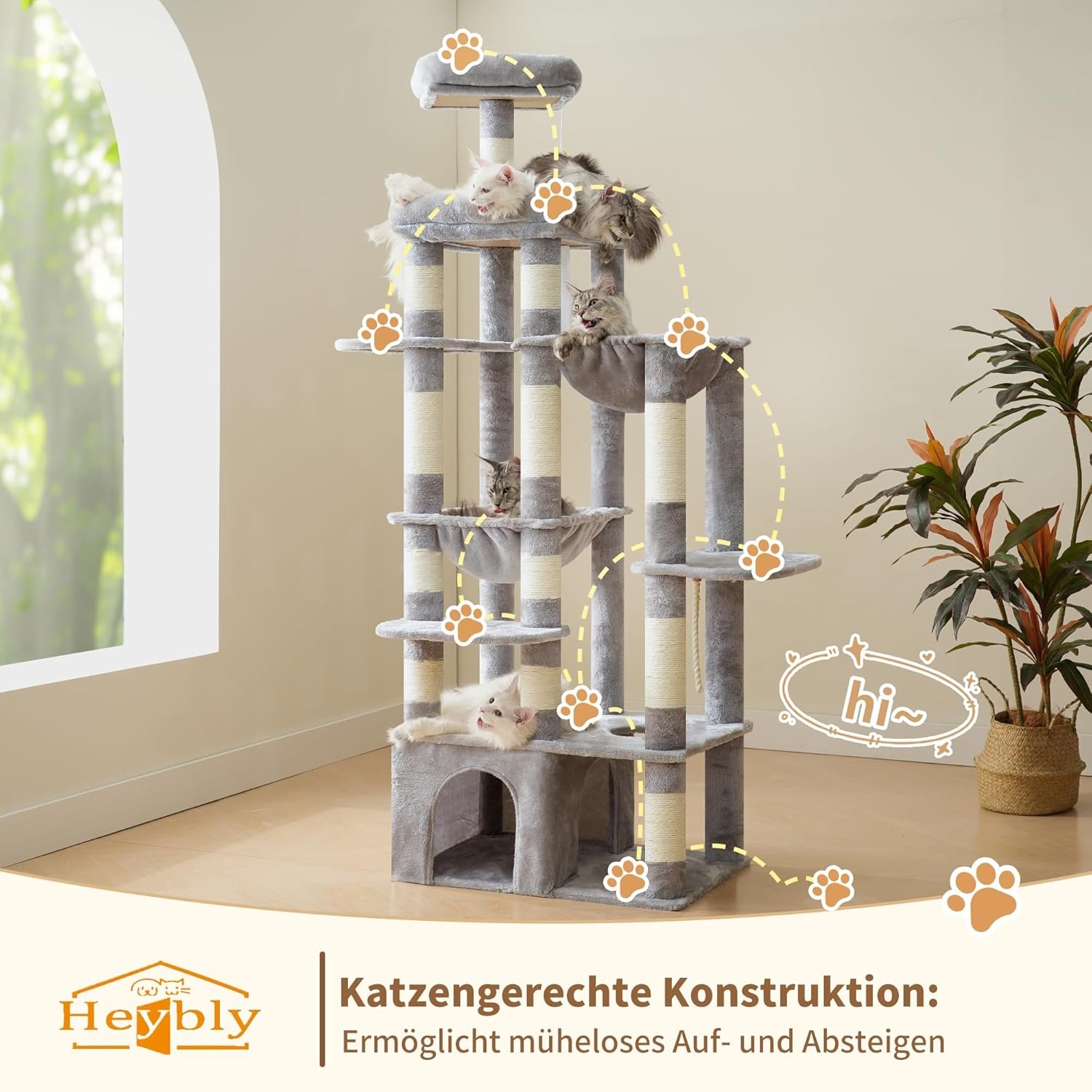 Schlichtes Design: Moderner Kratzbaum groß mit 180 cm Höhe; großzügiger Platz zum Klettern und Spielen; passt perfekt zu jedem Dekor; ideales Geschenk für Katzenliebhaber; Kratzbaum. Stabile Konstruktion für langanhaltenden Spielspaß