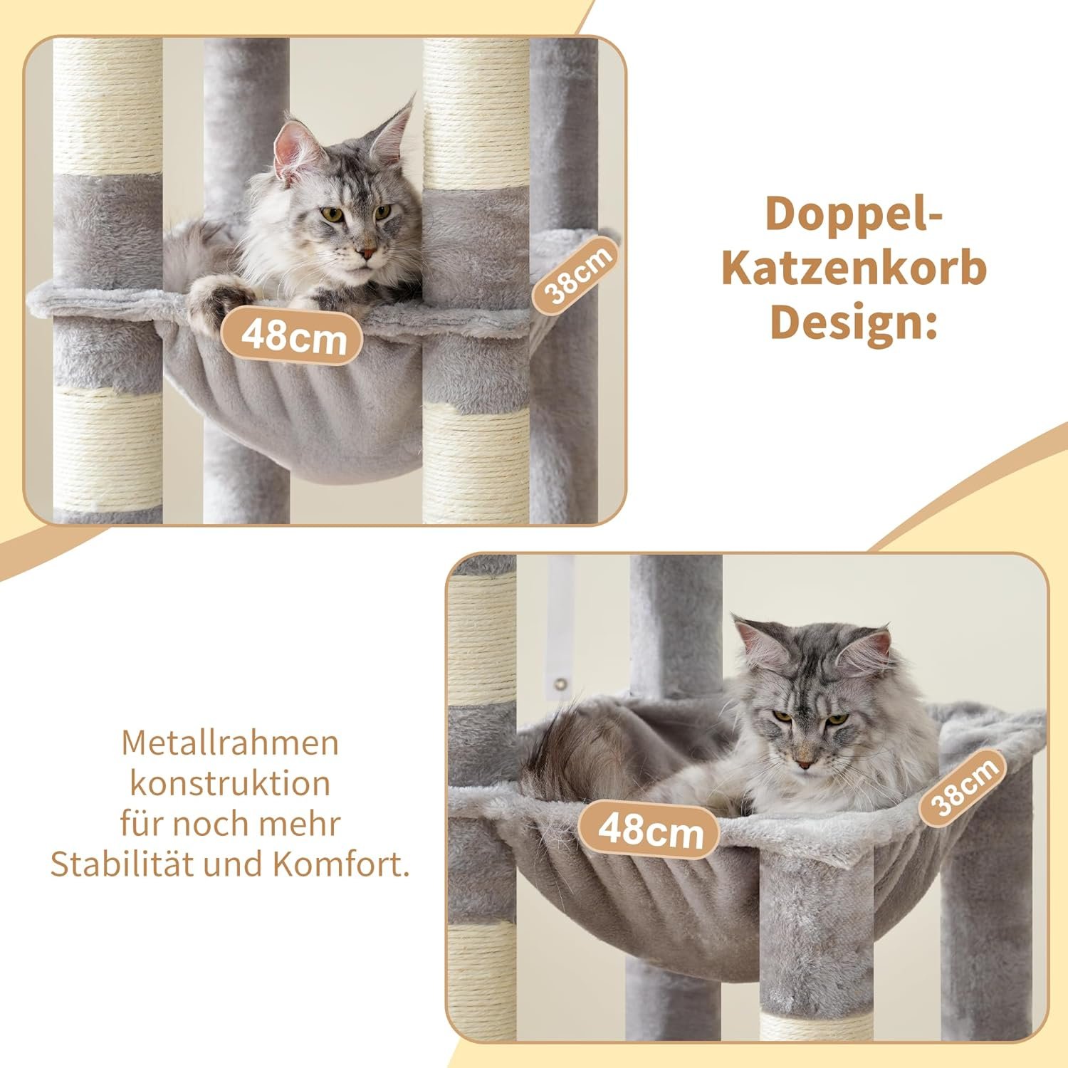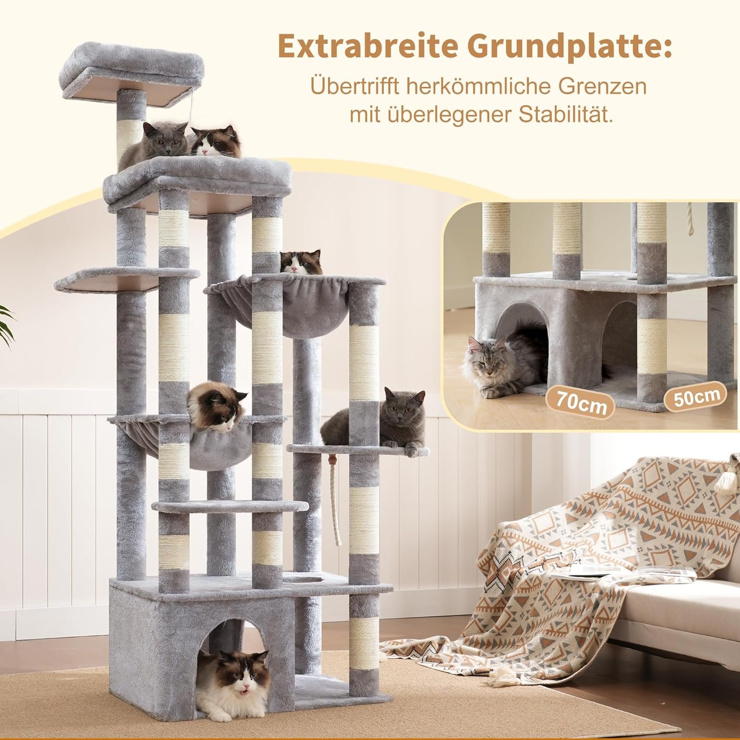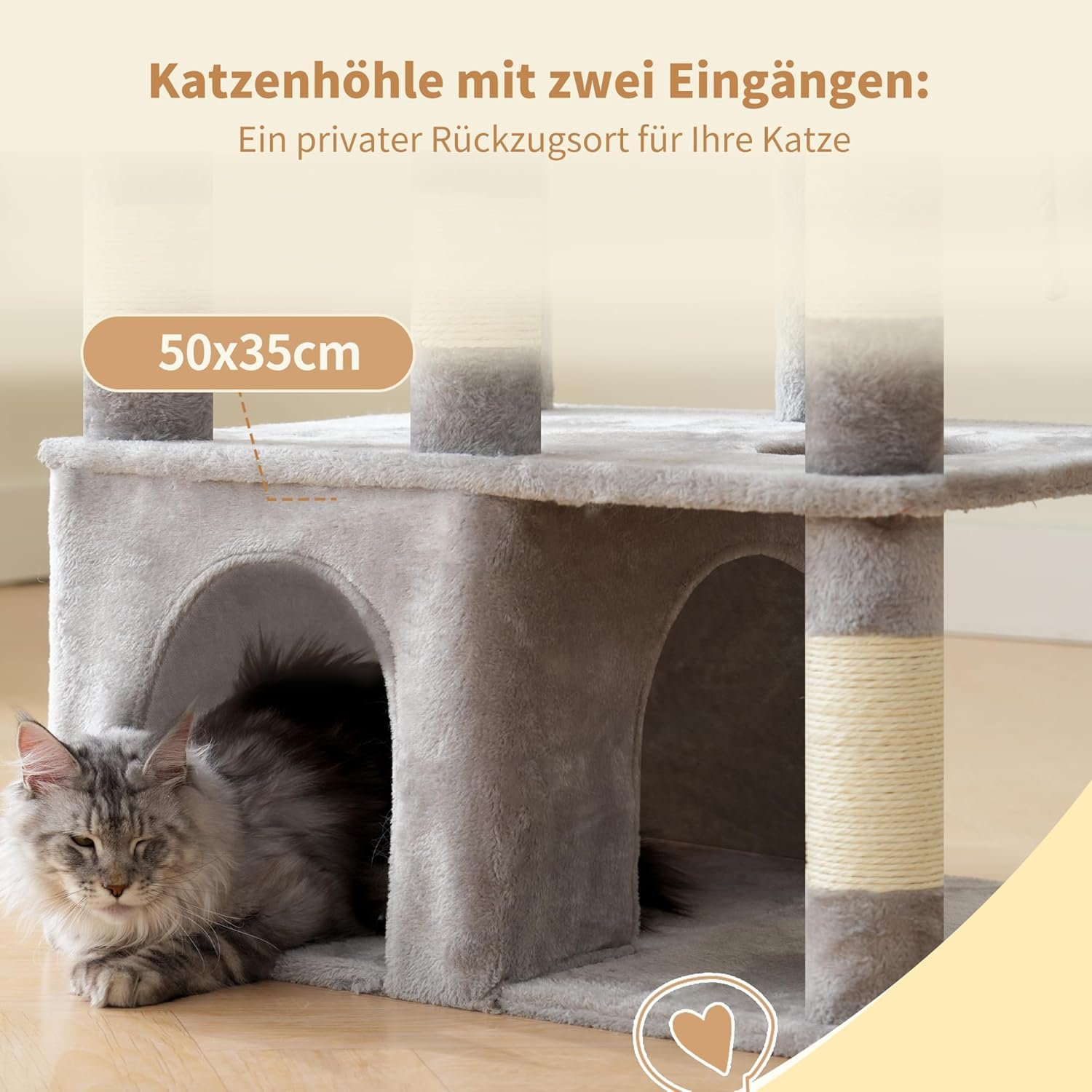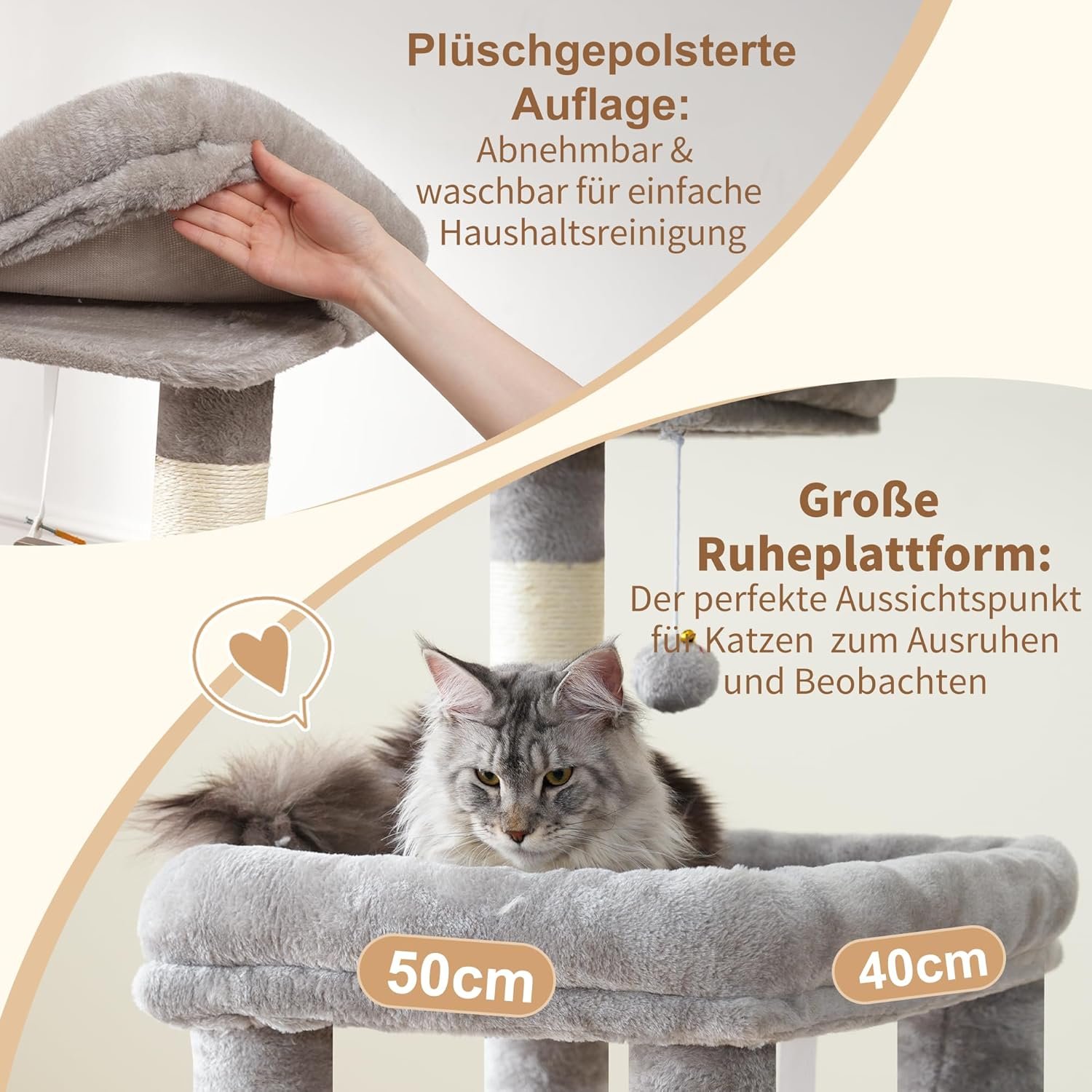 Extra große und breite Plattformen: enthält mehrere Ebenen; größte Plattform 50 x 40 cm für optimalen Komfort; ideal zum Liegen und Klettern für Maine Coon; Premium-Kratzbaum mit XXL-Flächen; Perfekter Kratzbaum für große Katzen und Haushalte mit mehreren Katzen