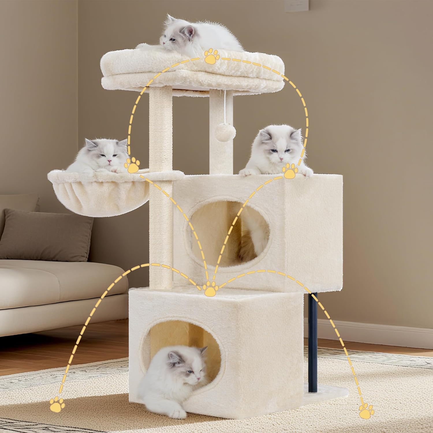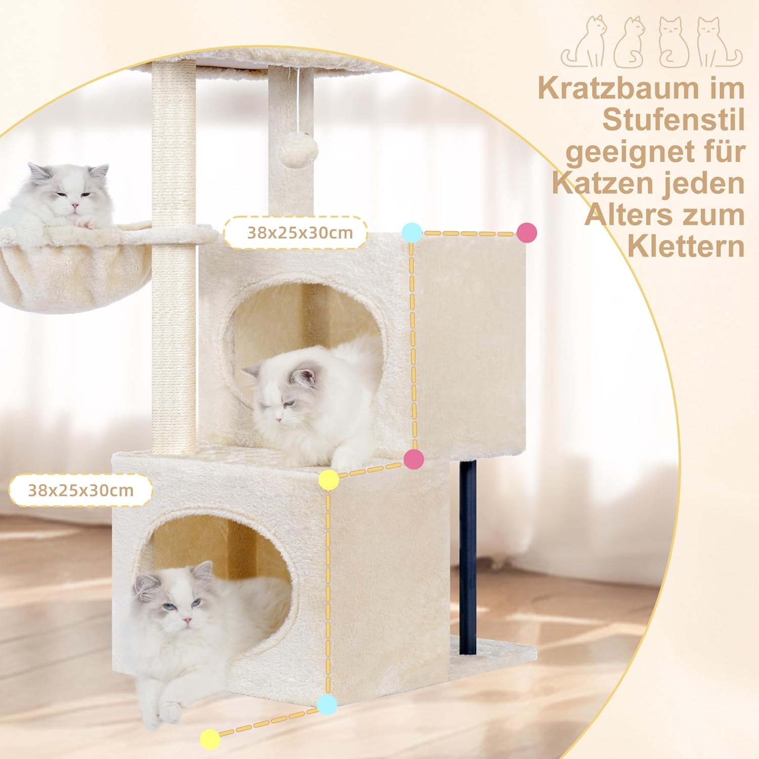 WISSENSCHAFTLICHE STUFENSTRUKTUR: Die beiden halbgeschlossenen Höhlen des Kratzbaums für kleine Katzen bilden ein einzigartiges Stufendesign, das natürliche Neigungen nachbildet. Die Stufenhöhe ist auch für ältere Katzen leicht zu erklimmen