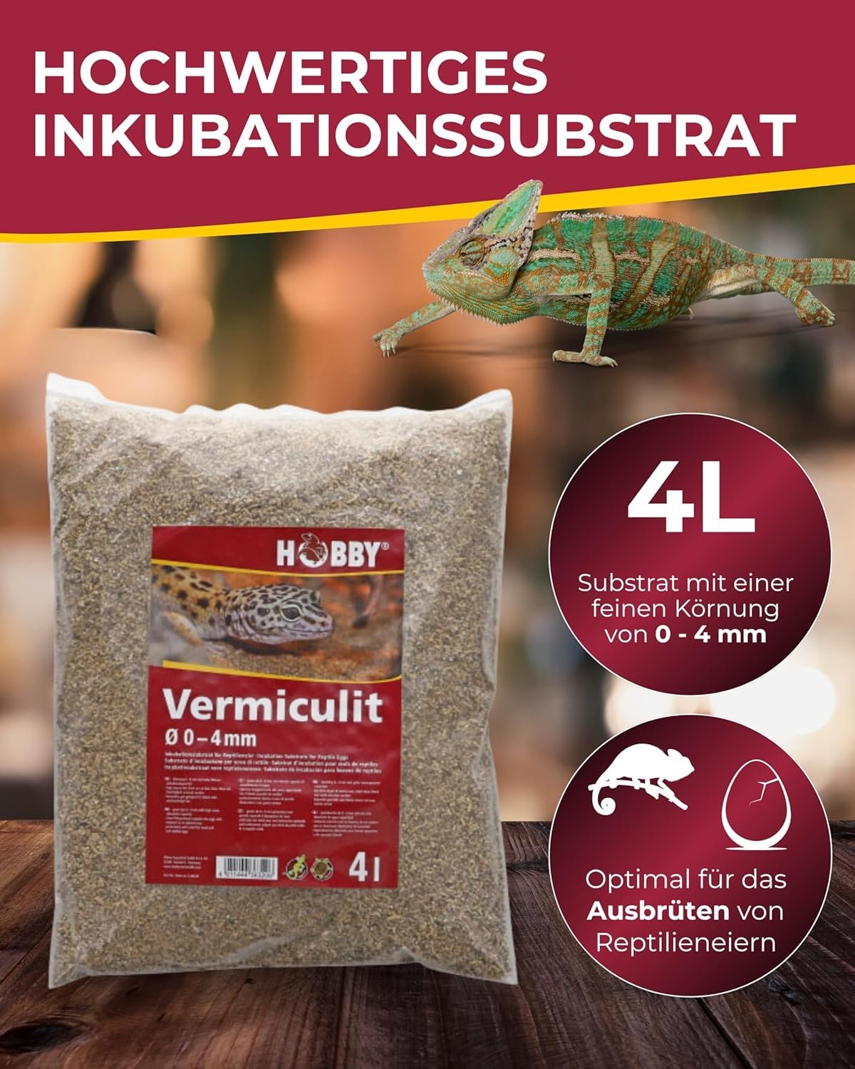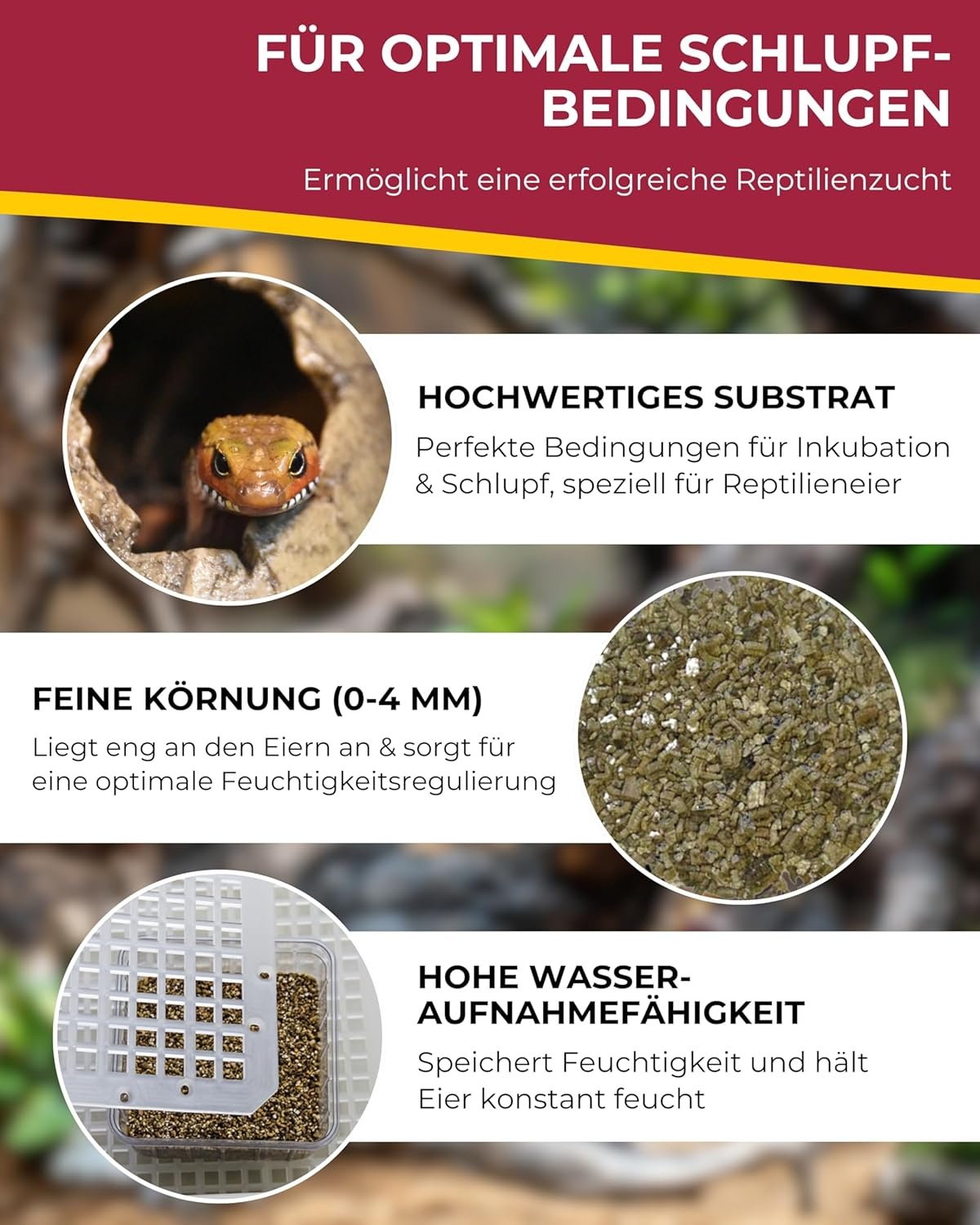 Natürliches Substrat – Unser Vermiculit für Terrarien ist das ideale Brutsubstrat für Reptilien, das optimale Bedingungen für die Brutzeit bietet und die Schlupfrate deutlich erhöht.