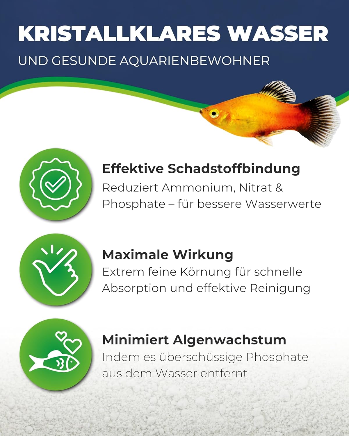 Effektive Schadstoffbindung – Zeolith für Aquarien adsorbiert Ammonium und Phosphate, wodurch der Nitratgehalt auf natürliche Weise reduziert und die Wasserqualität deutlich verbessert wird.