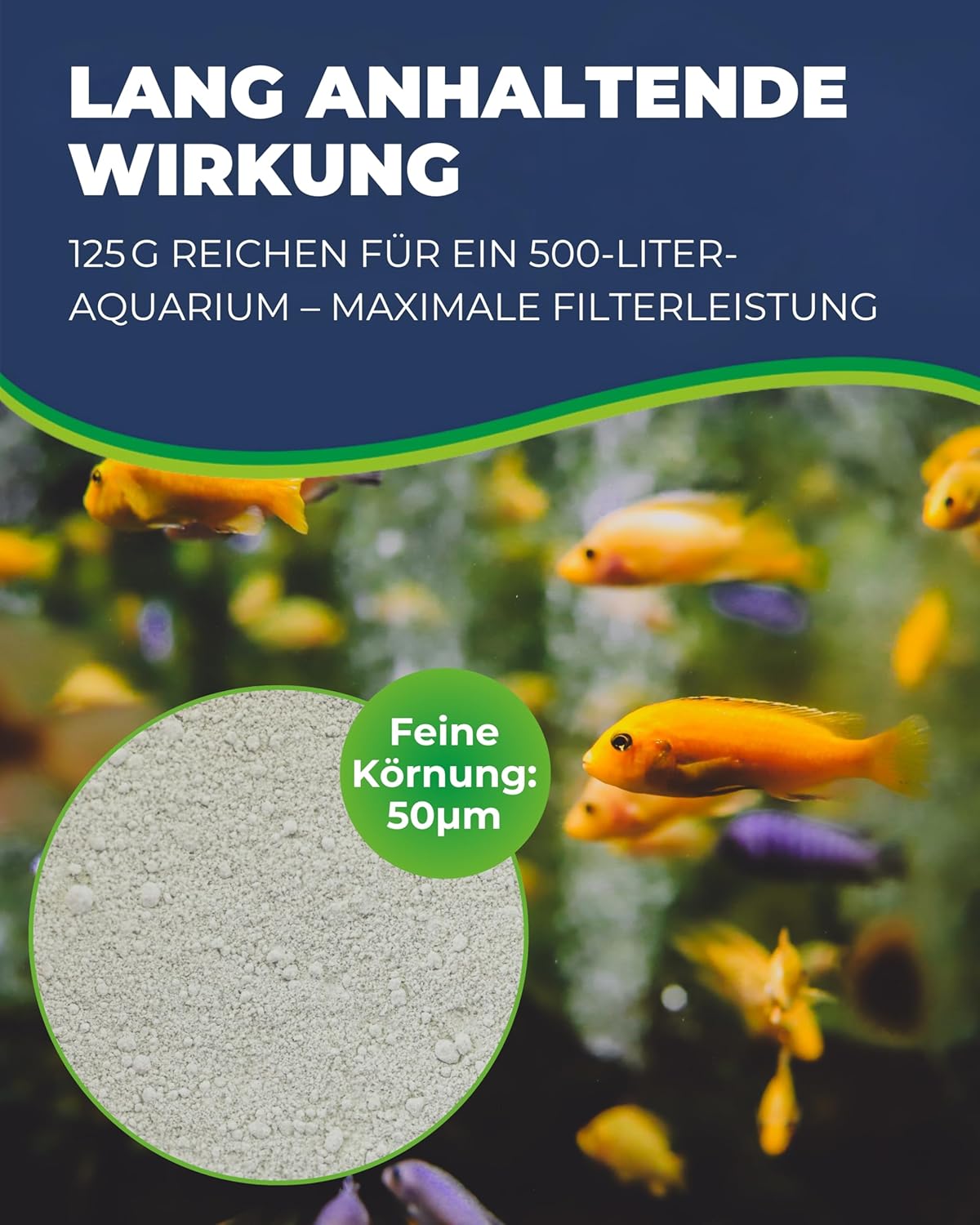 Volle Power – Unser Wasseraufbereiter bietet einen Klinoptilolith-Anteil von ca. 90 % und eine extrem feine Körnung von nur 50 Mikron, ideal für eine effiziente Schadstoffreduzierung im Aquarium.