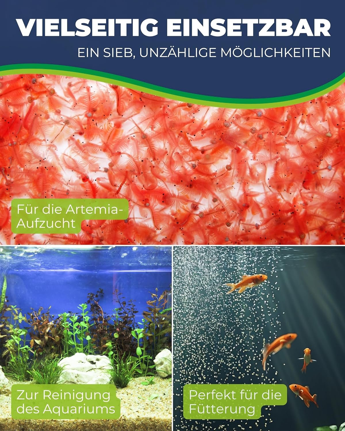 VIELSEITIG – Neben dem Abschöpfen von Artemia Nauplien kann unser Aquariensieb auch zum Auftauen von Frostfutter verwendet werden, was Ihnen mehr Flexibilität bietet.