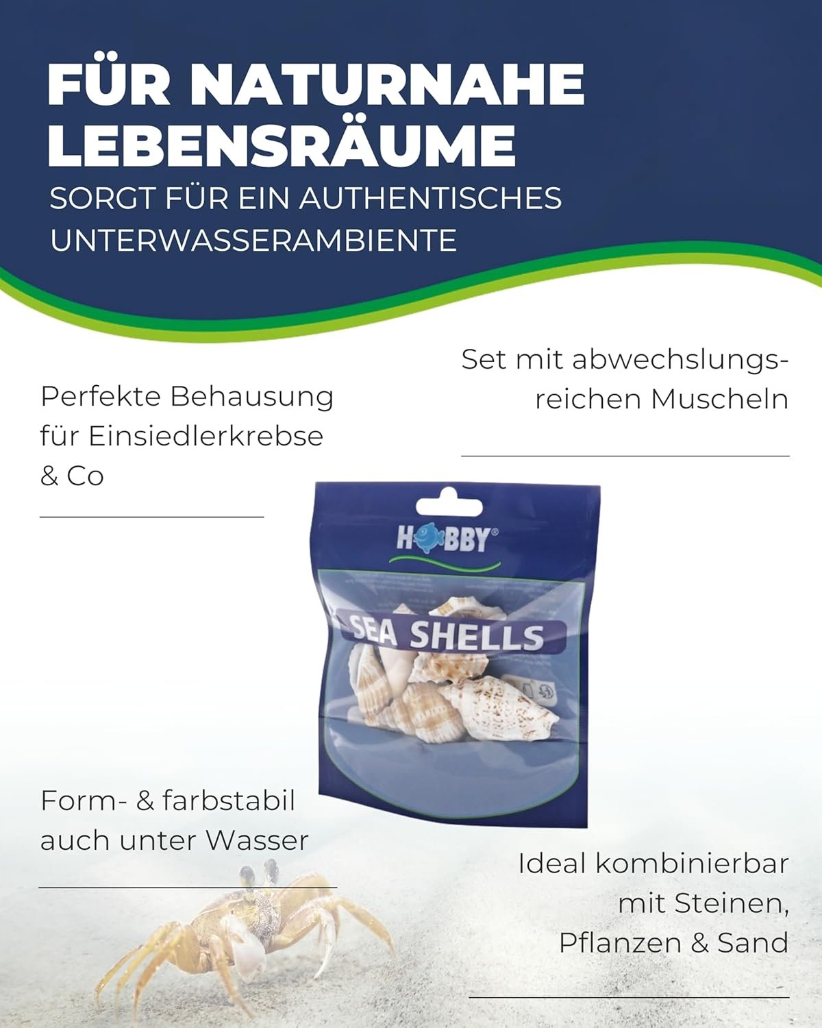 100 % natürlich – Das Muschel-Set besteht aus echten Muscheln, die zauberhafte Akzente in Ihrer Aquariendekoration oder Terrariengestaltung setzen – jedes Stück ist ein Unikat.