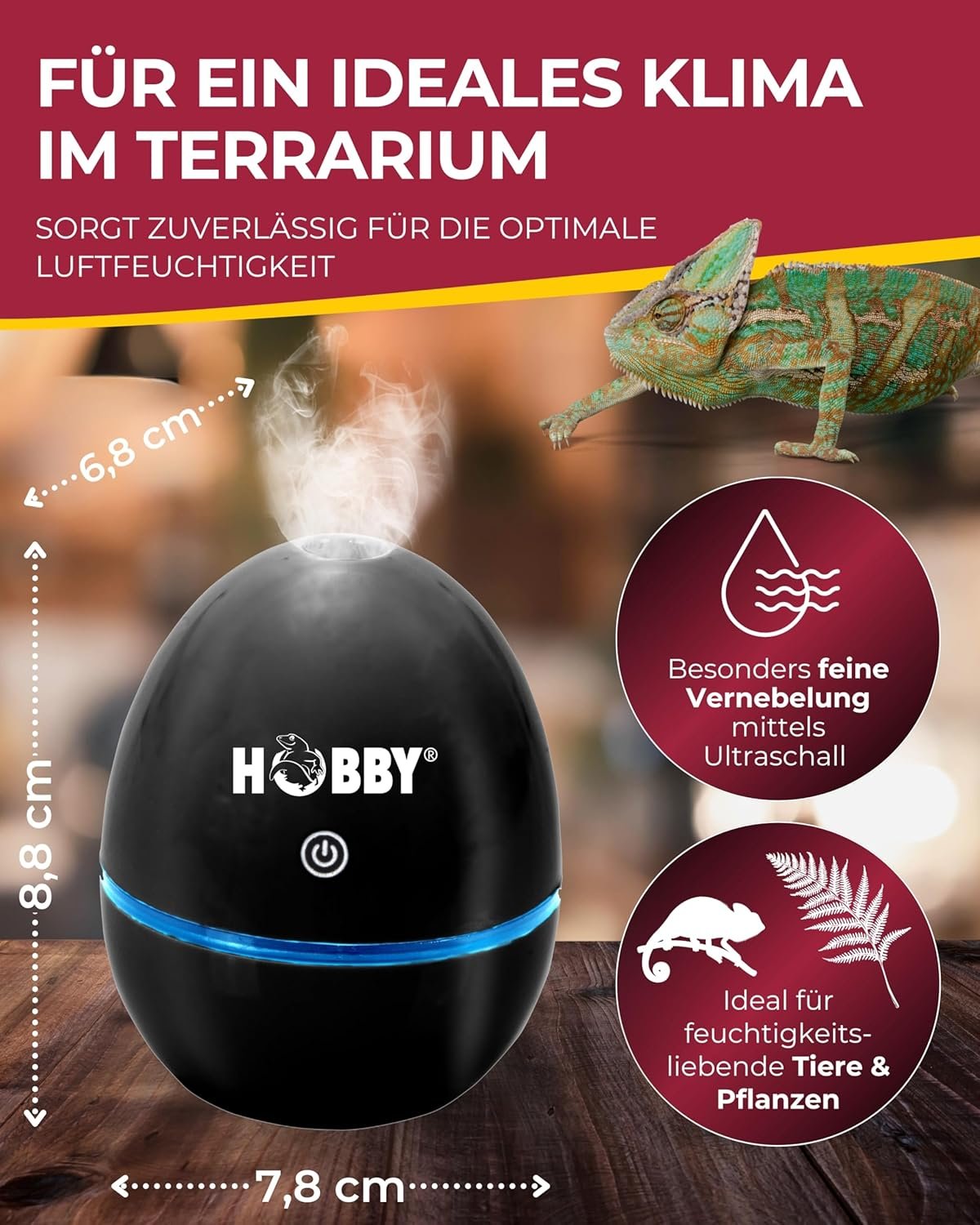 Hochleistungs-Belüftungssystem – Die Nebelmaschine Foggy erhöht dank moderner Ultraschalltechnologie zuverlässig die Luftfeuchtigkeit und sorgt für ideale Bedingungen in Ihrem Terrarium.