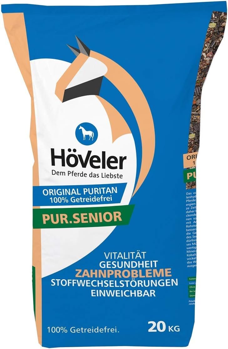 Das vollwertige Müsli ist durch seine kohlenhydratreduzierte Rezeptur ideal für Pferde mit Stoffwechselstörungen oder Allergien. Pur.Senior lässt sich in kurzer Zeit mit Wasser aufweichen und bietet somit eine schmackhafte Alternative bei Zahnproblemen. Luzerne und Sojabohnen sorgen für eine optimale Versorgung mit Aminosäuren. Verdauungsrohstoffe wie Apfeltrester und Bierhefe verbessern eine gesunde Darmflora und damit die Gesundheit und Widerstandskraft des Senioren. Abgestimmt auf die Ernährungsbedürfnisse eines älteren Pferdes enthält dieses Getreide weniger Energie und hochwertige Aminosäuren sowie gut verfügbare Mineralstoffe wie Zink, Kupfer, Selen, Mangan, Kobalt und Magnesium. Diese speziell entwickelte Vitalstoffkombination verbessert das Wohlbefinden im Alter und sorgt für eine ausgewogene Ernährung.