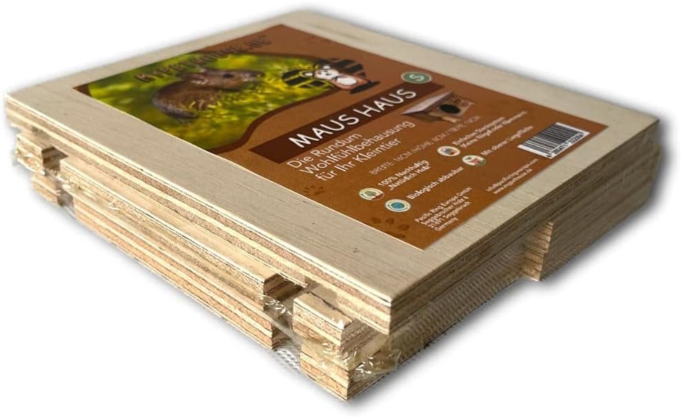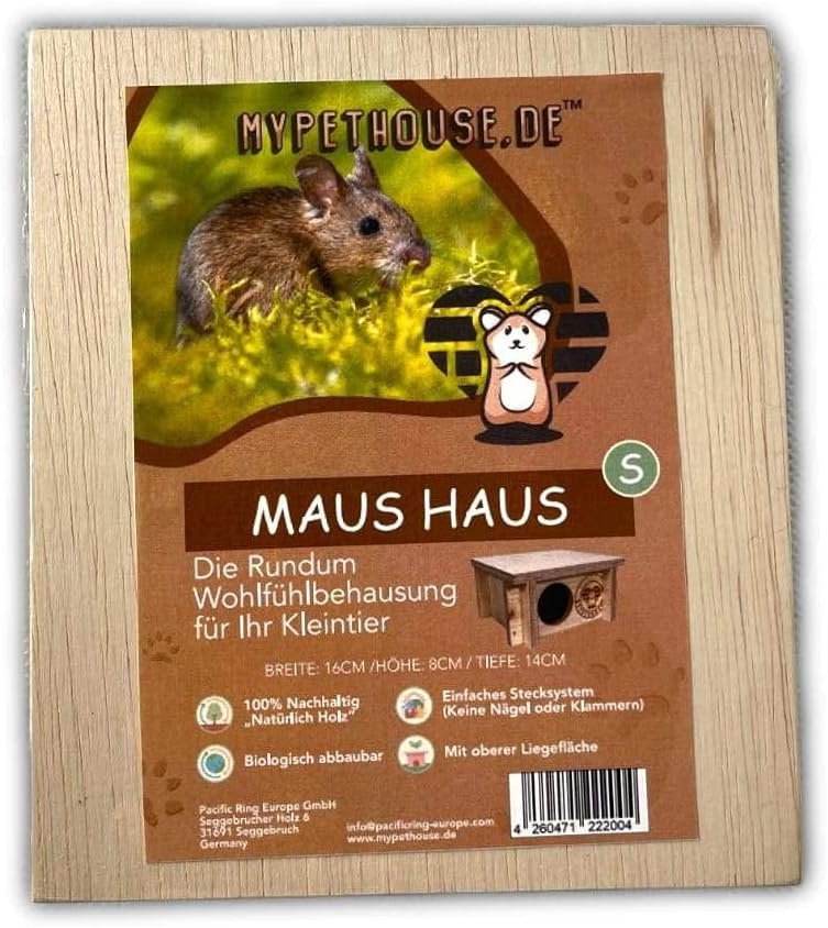 mypethouse Mäusehaus ist einfach zu montieren, nachhaltig, aus leichtem Albasia-Massivholz gefertigt, mit einem Eingang zum Wohlfühlen. Der Eingang hat einen Durchmesser von ca. Die Größe beträgt ca. 5 cm und ist somit auch für alle Mäuse geeignet. Maße: Breite: 16 cm, Höhe: ca. 8cm / Tiefe: 14cm Stabile Verbindung ohne Metallnägel, ohne Kleber, ohne Klebereste oder überstehende Klammern. Schnell und einfach einzurichten. Sicher für Ihre Nagetiere