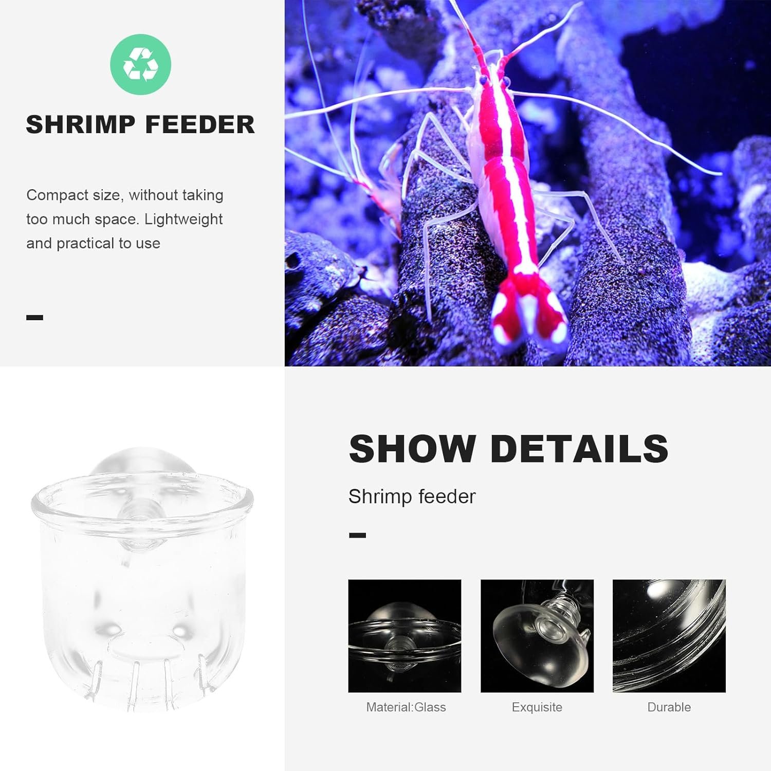 – Saugnapf-Futterspender können auch als Aquarien, Garnelenbecken oder flache Futterbehälter verwendet werden, um Schäden an Fischen zu reduzieren.