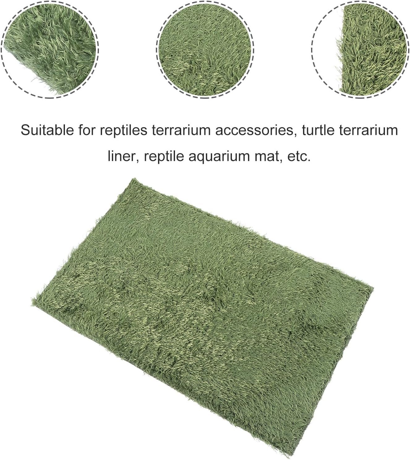 Schildkröten-Einstreu: Moosähnlich, diese Matte wird Reptilien lieben. Terrarien-Einstreu: Die Matte ist aus strapazierfähigem Material gefertigt und bietet Komfort und Funktionalität. Terrarien-Einlage: Sie ist wasserdicht, atmungsaktiv und bietet Ihrem Haustier höchsten Komfort zum Liegen und Ausruhen. Bodengrund: Sie fühlt sich angenehm an den Füßen, dem Bauch und den Zähnen Ihres Reptils an.