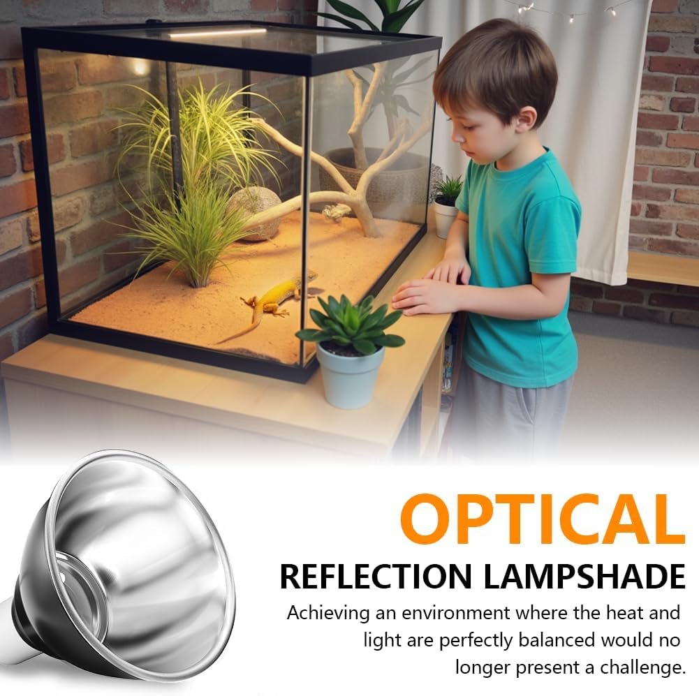 【Reflektierendes und langlebiges Material】 Die Abdeckung der Reptilien-Heizlampe besteht aus hochwertigem Aluminium mit einer Wandstärke von 1 mm, das hohen Temperaturen standhält und sich nicht verformt. Das tiefe Kuppeldesign und die reflektierenden Eigenschaften der polierten Aluminiumlegierung reflektieren UVA-/UVB-Licht effizient und erhöhen so die Wärmeabgabe und Infrarotstrahlung