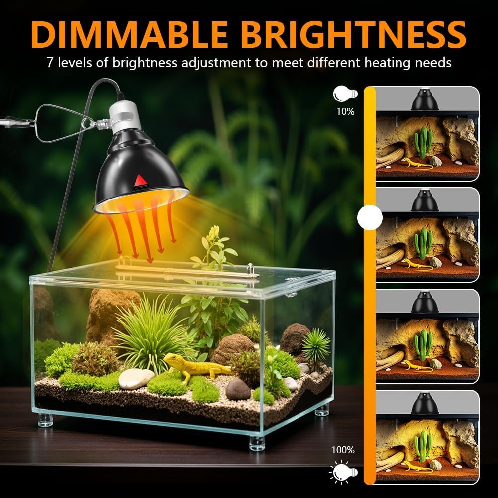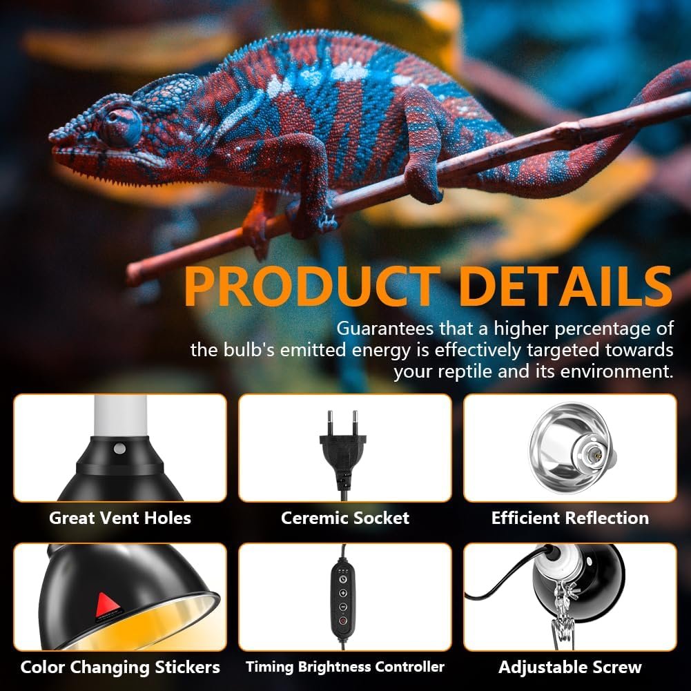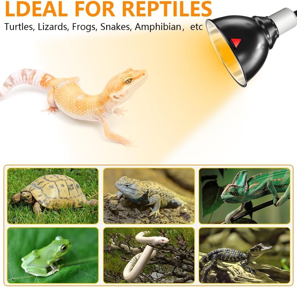 【Mehrzweck】Unsere Reptilienlampe ist mit E27 UVA/UVB-Lampen mit einer maximalen Leistung von 100 Watt kompatibel. Ob Sie eine Schildkröte, eine Schlange, eine Eidechse oder ein anderes Reptil halten, unsere Reptilien-Heizlampe ist die perfekte Wahl. (Hinweis: Die Glühbirne ist nicht im Lieferumfang enthalten. Bitte besorgen Sie eine Heizbirne für Ihr Haustier.)