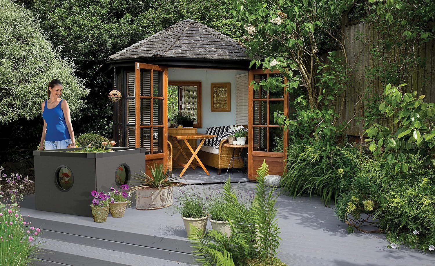 Hauptmerkmale: Schnelle und einfache Installation ohne Grabungs- oder Baukenntnisse Das revolutionäre „Twist & Lock“-System macht den Einsatz von Werkzeug überflüssig Eine praktische und moderne Lösung für einen traditionellen Teich; perfekt für alle Außenbereiche Seitliche Sichtfenster ermöglichen es Ihnen, die Fische in ihrer natürlichen Umgebung zu beobachten