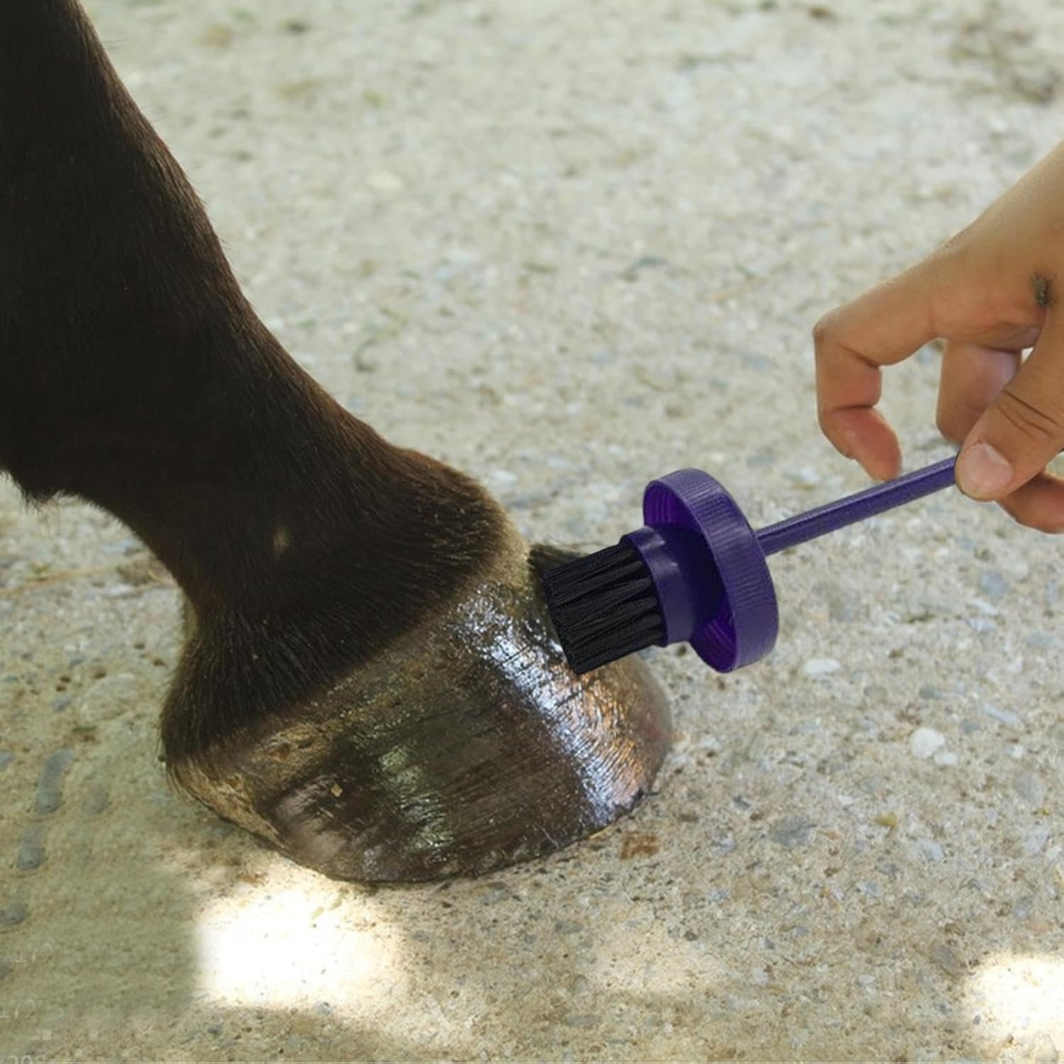 EINFACH ZU VERWENDEN Diese Hufölbürste wird mit einem Eimer geliefert, mit dem Sie die Hufe Ihres Pferdes in wenigen Minuten reinigen und polieren können, sodass sie glänzend und gesund bleiben.
