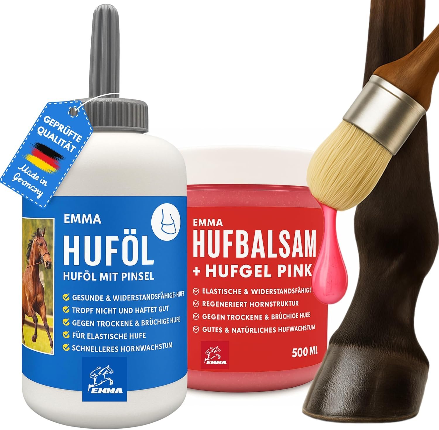 Stärkt Huf, Balken und Kronenrand, EMMA Huffett Pferde zum Einfetten von Pferdehufen, Huföl und -gel, regeneriert und stärkt und repariert die Hornstruktur mit natürlichen Ölen und Fetten, feuchtigkeitsspendende Hufpflegecreme auch als Hufpflegeöl, Pferdezubehör zur Erhaltung kräftiger Hufe und gesunder Balken, Hufpflege Pferde beugt wirksam Fungfung- und Bakterfungsbefall und anderen Hufkrankheiten vor. Strahlpflege Huffettgel schützt auch den Jet I gesund Balken – Schutz gegen Strahlfäule des Pferdes