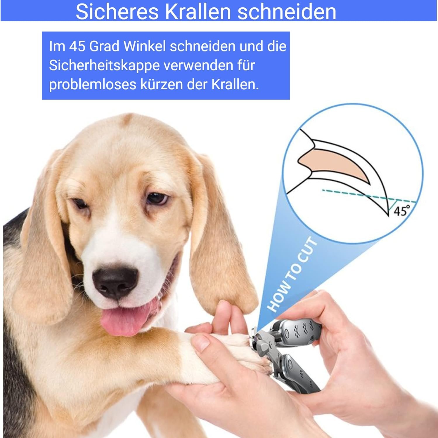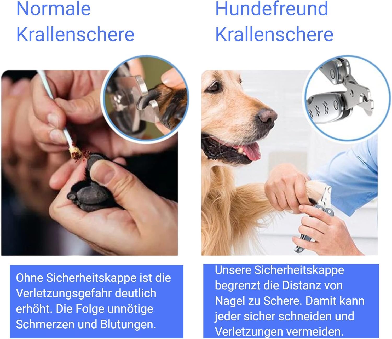 Sicherheitssystem für Ihren Hund – integrierte Sicherheitskappe, um nie zu kurz zu schneiden und unser Sicherheitsverschluss zum Fixieren der Hundenagelschere