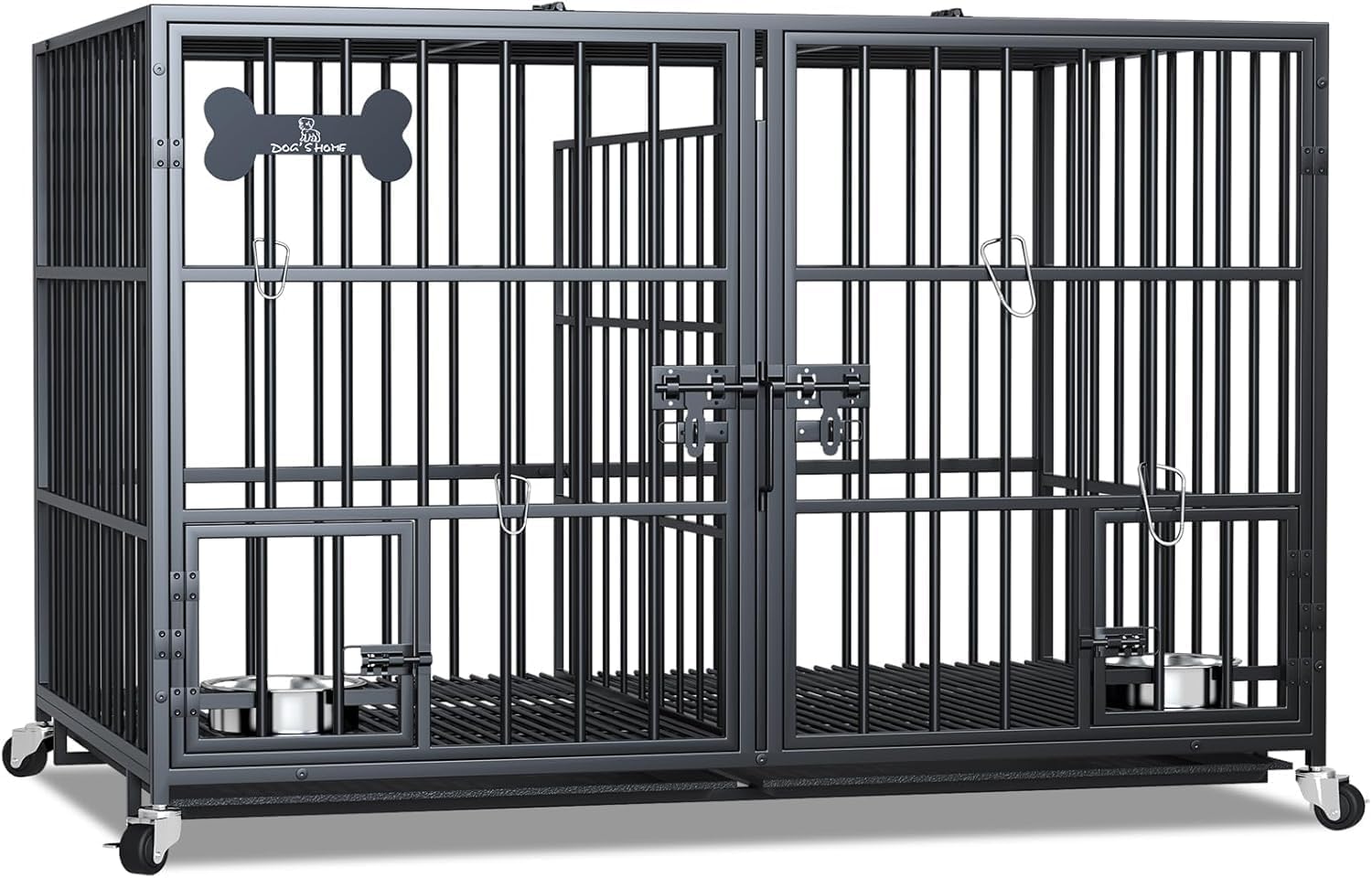 Doppeltür-Design: Unser Hundekäfig mit 2 Türen mit zwei Türen ermöglicht einfachen Zugang zum Passieren oder Betreten Ihrer Hunde. Auch nützlich zum Füttern des Futters. Die doppelten L-förmigen Verschlüsse lassen sich für Ihren Vierbeiner nur schwer öffnen. Kann den Hund sicher und ruhig im Haus halten und verhindern, dass er entkommt und etwas im Haus zerstört. Ideal für Hunde zum Spielen und Schlafen.
