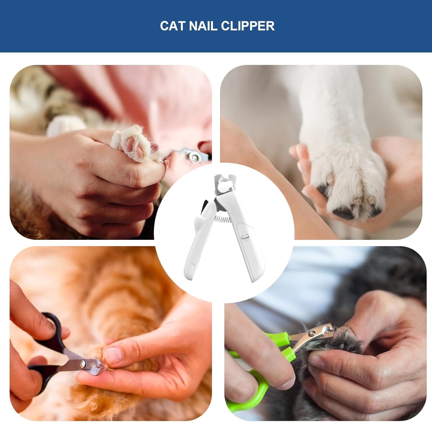 Unsere Katzenkrallenspitzen sind perfekt für Ihren pelzigen Freund! Langlebig und wiederverwendbar mit angenehmem Griffgefühl. Machen Sie die Nägel Ihrer Katze glatter und verhindern Sie, dass Nagelfragmente herausspritzen. Bleiben Sie sicher mit dem integrierten Licht unserer Haarschneidemaschinen und eliminieren Sie das Risiko von Fehlern.