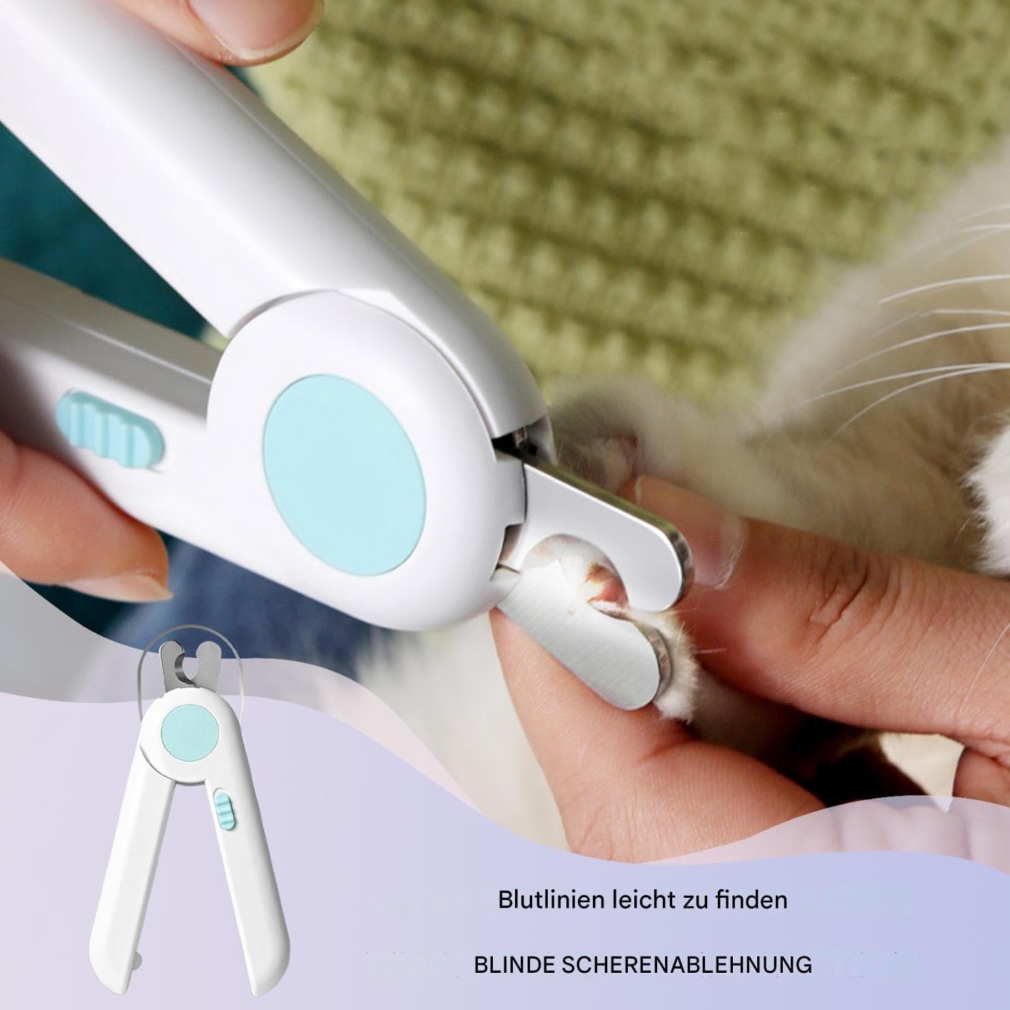 Präzisionsbeleuchtung: Diese Hundernagelschere verfügt über hochhelle LED-Leuchten, die verdickte Bereiche der Krallen beleuchten und präzises Schneiden ermöglichen, um Verletzungen zu vermeiden, besonders bei abendlicher Pflege in dunklen Umgebungen
