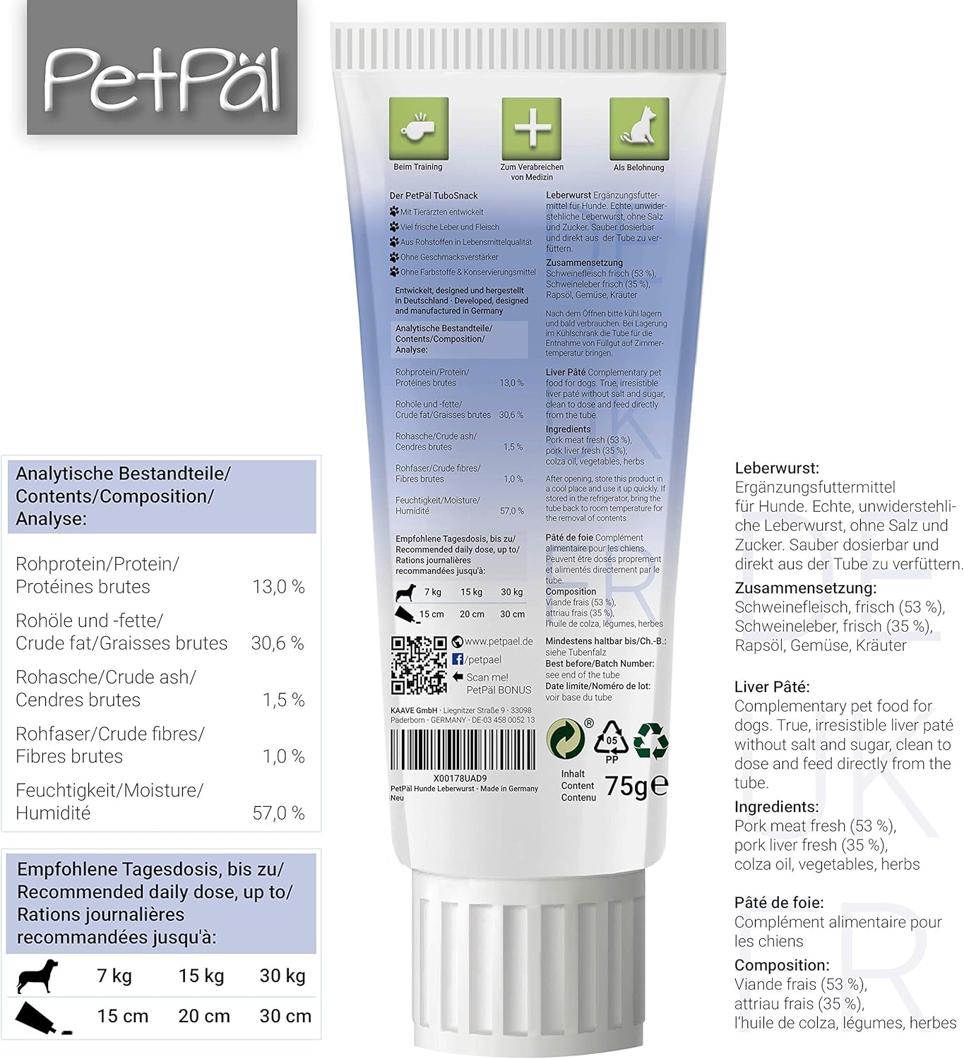 ACHTUNG: Suchgefahr! – Ihr vierbeiniger Freund wird den PetPäl TuboSnack lieben und von diesem Leckerbissen begeistert sein. Ob geschmackvolle Leberwurst für den Feinschmecker, fettreduzierte Geflügelleberwurst für den figurbewussten Hund oder Omega-Fettsäuren, reichhaltige Lachscreme für den gesundheitsbewussten Hund. Ganz gleich, wofür Sie sich entscheiden, achten Sie immer darauf, dass Sie über ausreichend Vorrat verfügen.