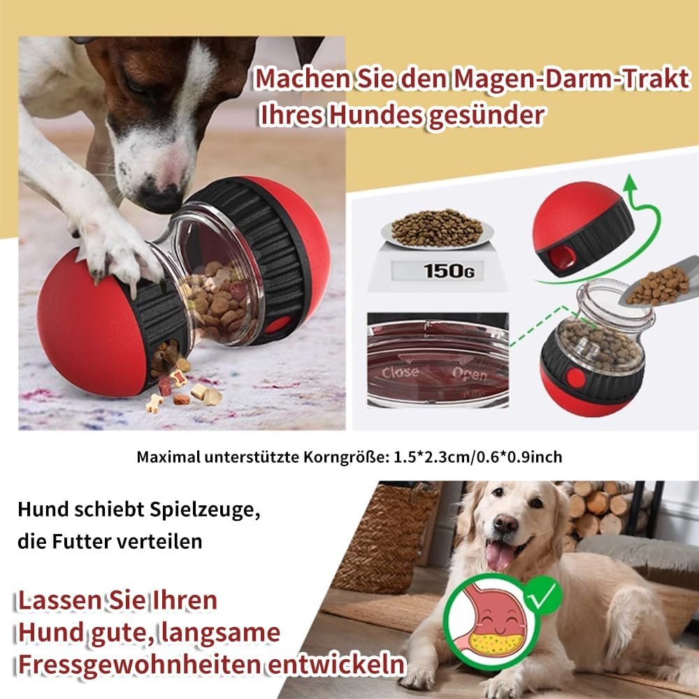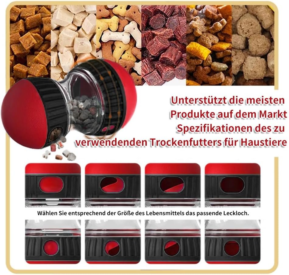 Verstellbares Futter: Jeder Ball ist mit einem Schalter zur Futterausgabe ausgestattet, sodass das Spielzeug verschiedene Größen und Arten von Tierfutter aufnehmen kann, egal ob es sich um Trockenfutter, Trockenfutter oder Leckerlis handelt. Der Schalter kann je nach Futtergröße eingestellt werden, sodass Sie steuern können, wie lange es dauert, bis Ihr Haustier seine Belohnung erhält. Verbessertes mentales Training: Hunde können ihren ausgeprägten Geruchssinn nutzen, um an dem Spielzeug, das sie mit einem Bissen Futter füttern, zu riechen und dann ihre Nase oder Pfote in das Spielzeug zu stecken, um es in Bewegung zu setzen. Dieser interaktive Prozess ermöglicht nicht nur eine schrittweise Verteilung des Futters während des Spiels, sondern belohnt auch die Bemühungen Ihres Haustieres. Dies schult die Intelligenz, baut überschüssige Energie auf, stimuliert den Geist und sorgt für geistige Veränderungen, sodass das Tier aktiv und motiviert bleibt.