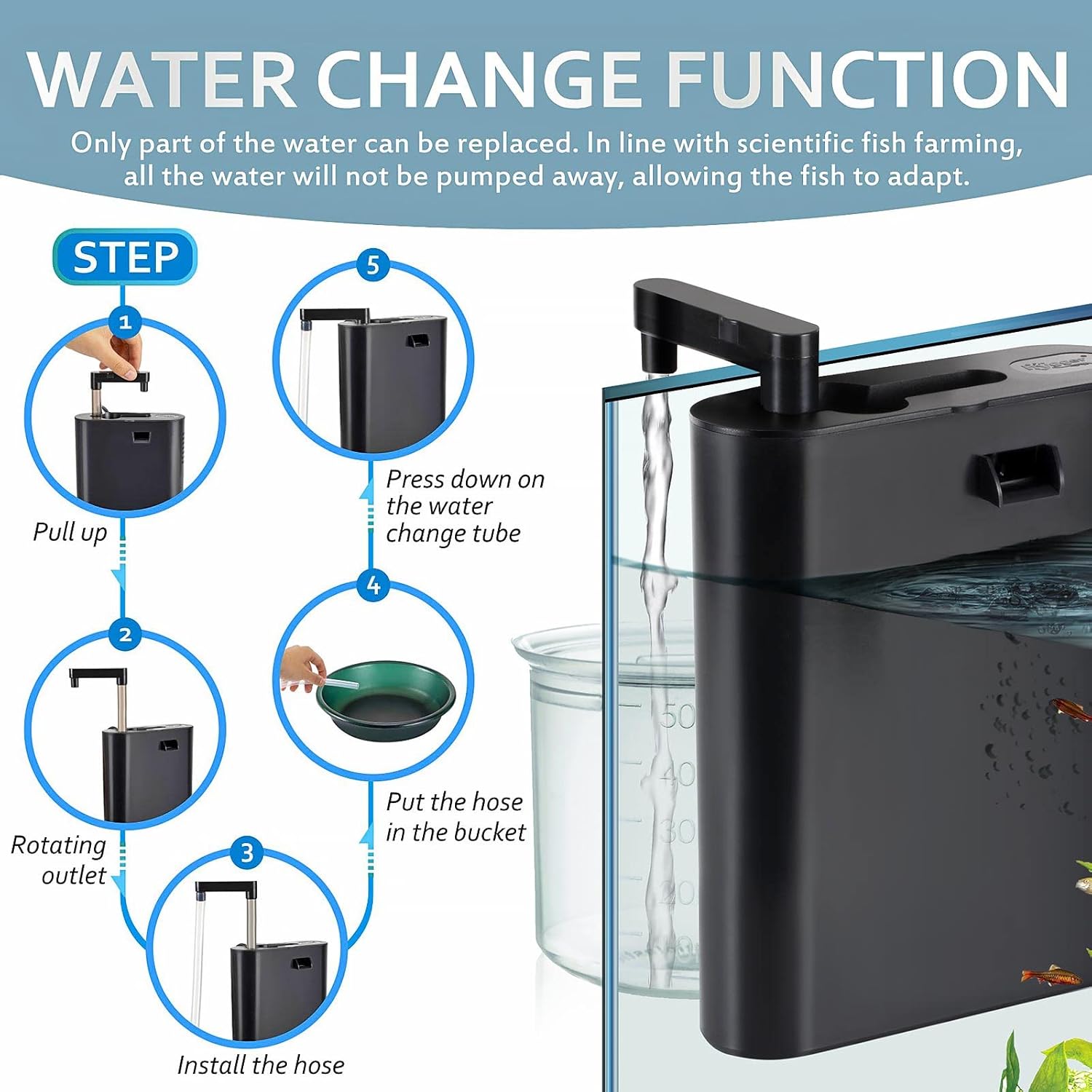 Wasserwechselfunktion: Unser innovatives Wasserwechsel-Design ermöglicht einen schnellen und einfachen Wasserwechsel. Drehen Sie den Auslasshahn, um das Wasser aus dem Tank mit dem mitgelieferten Schlauch (47,2 Zoll) zu wechseln, es kann jedoch nur ein Teil des Wassers ausgetauscht werden. Der Hygger-Aquariumfilter entspricht der wissenschaftlichen Fischzucht, das gesamte Wasser wird nicht weggepumpt, damit sich die Fische anpassen können.
